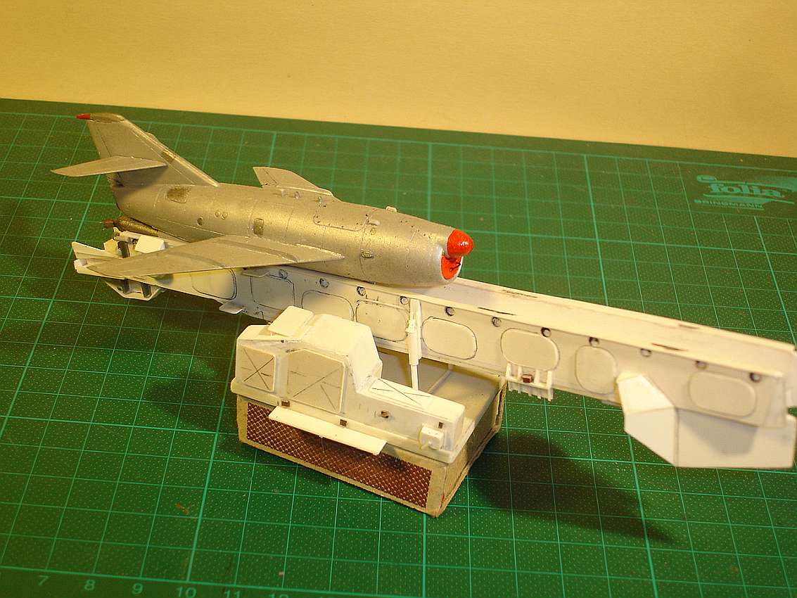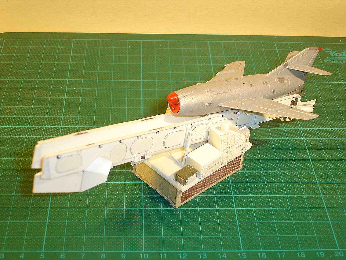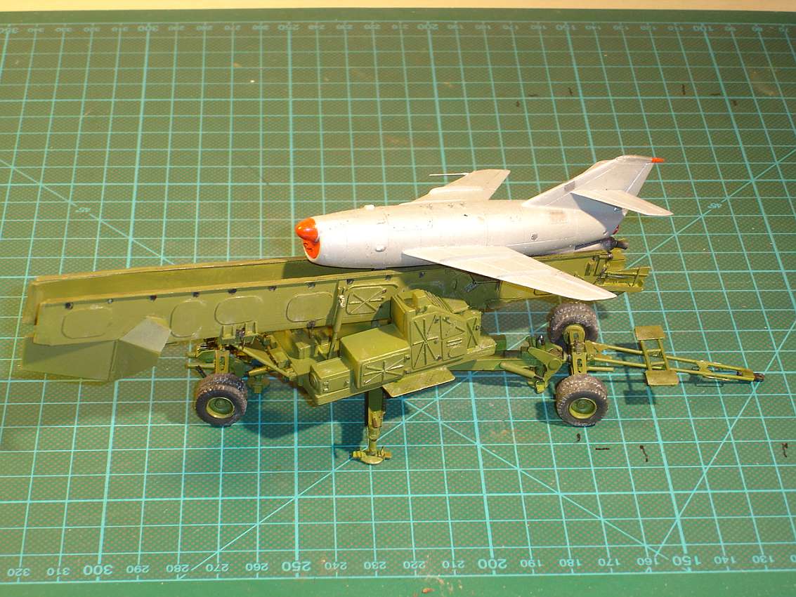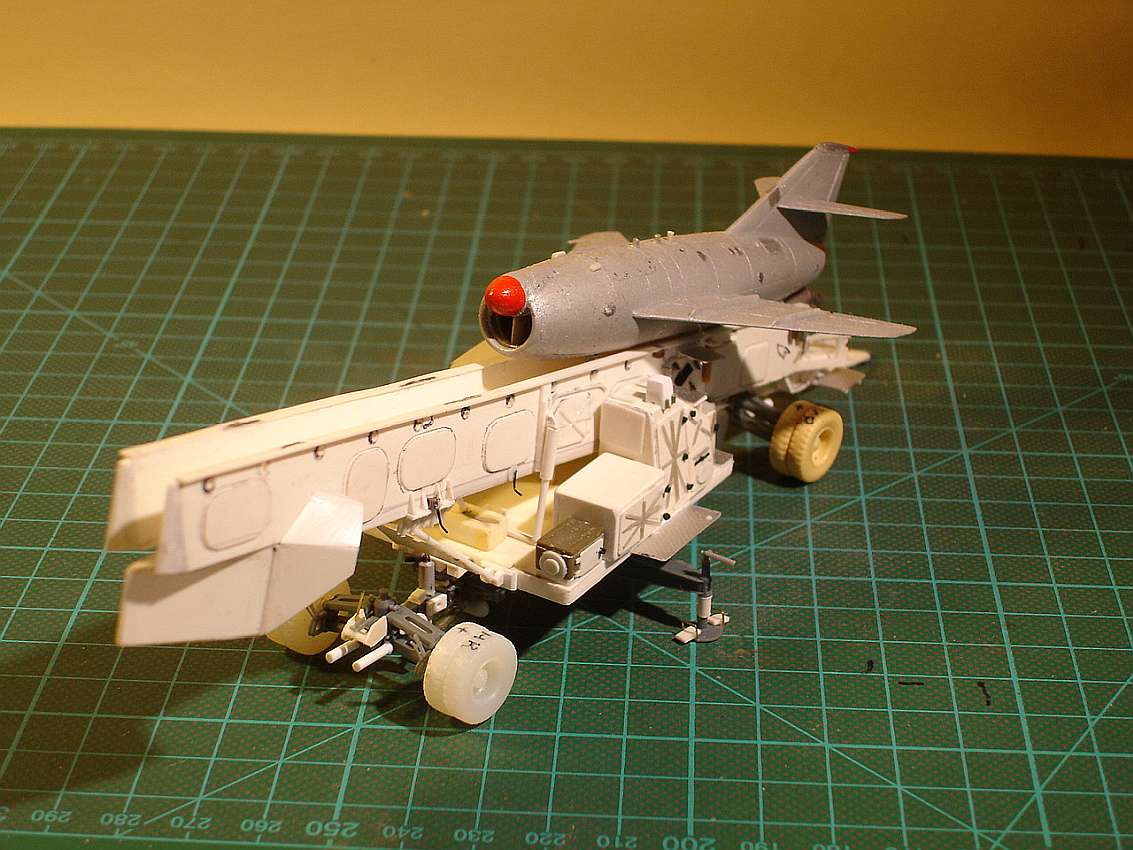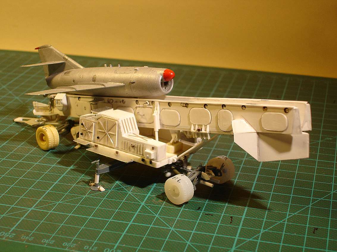 from A-Modell. As with the SOPKA S-2 launch ramp, but here with the wings folded (transport position). The trailer was driven backwards onto the ramp, the