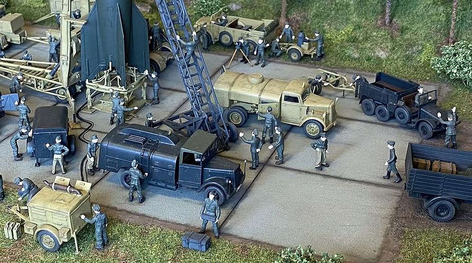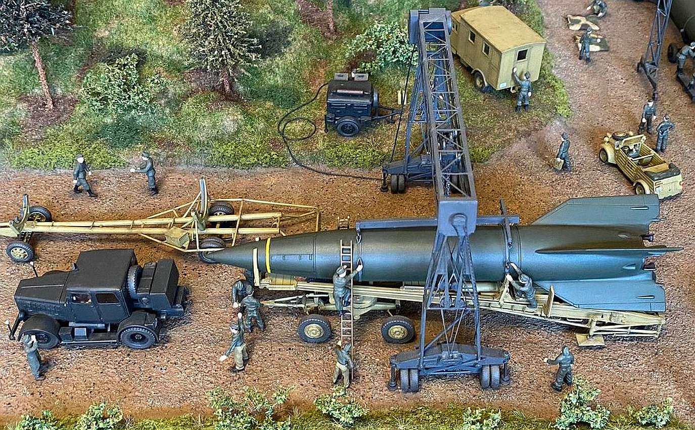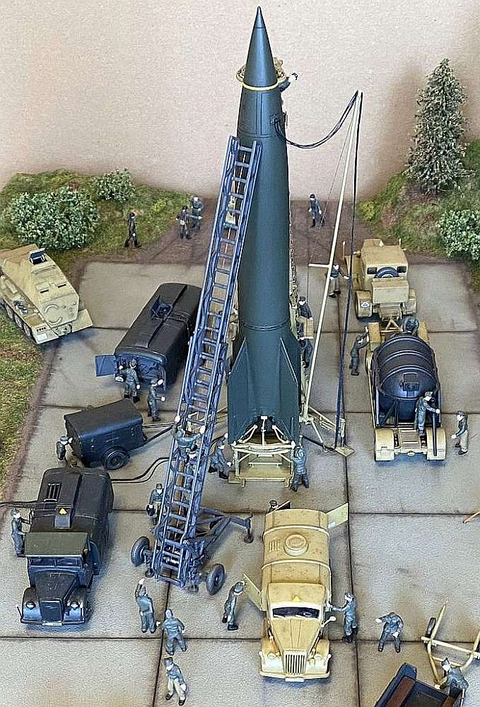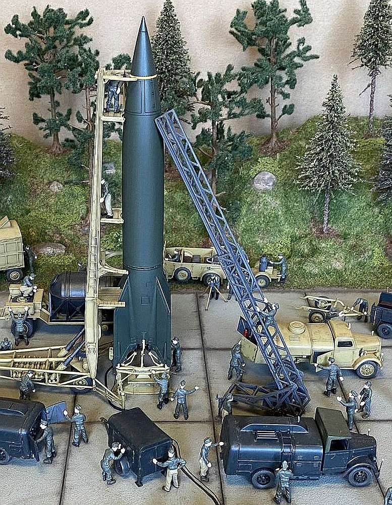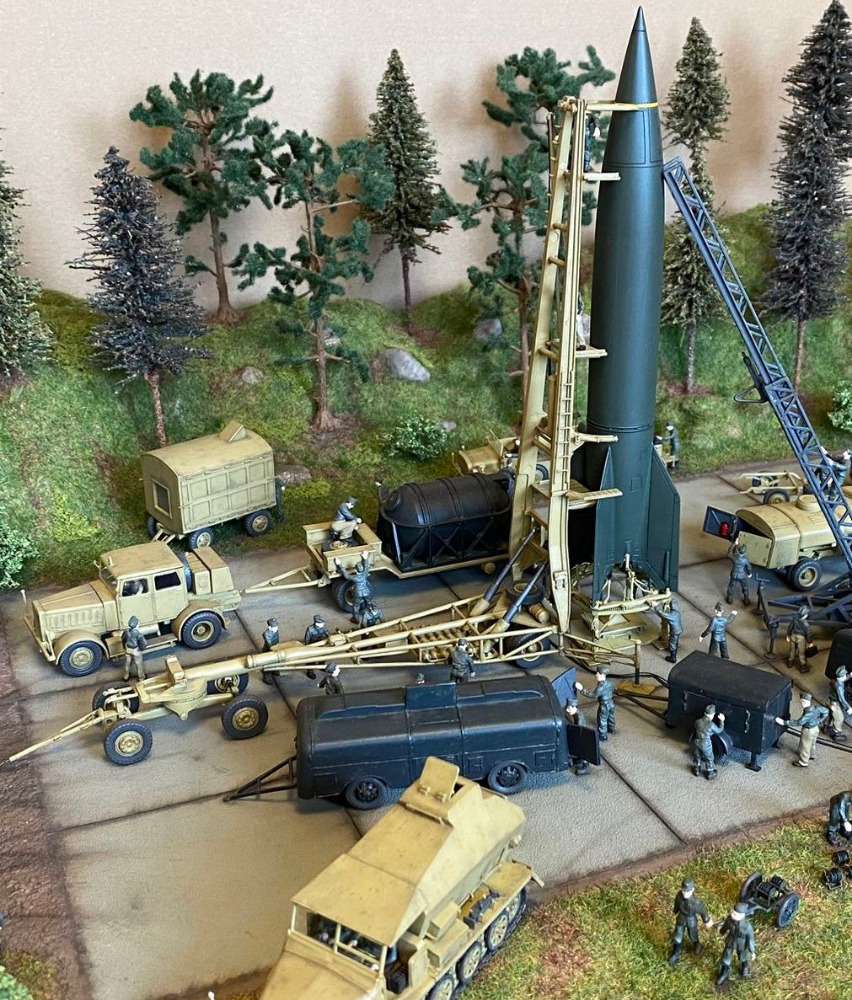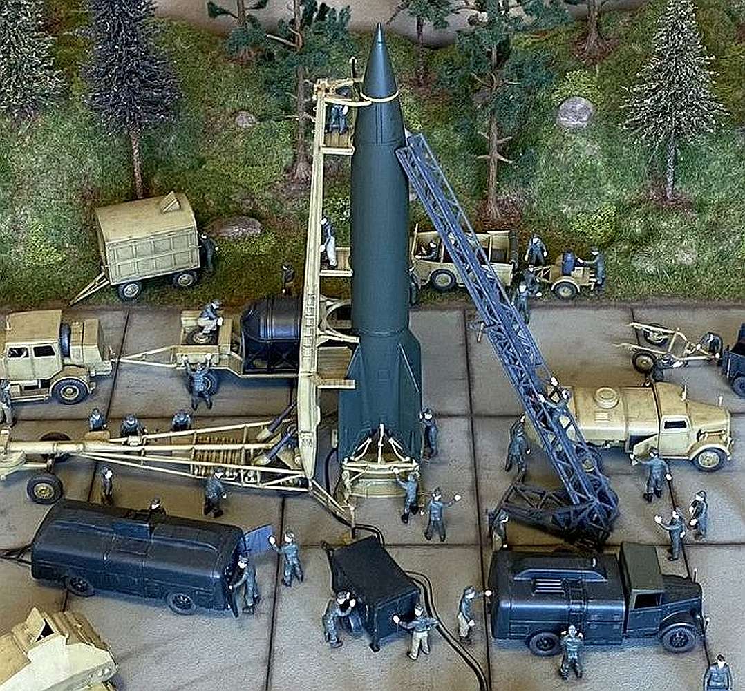 Comments Ivan Visek: Two dioramas with a V-2 rocket. One represents the preparation place (PP), the other the firing place (FP). Some of the models
