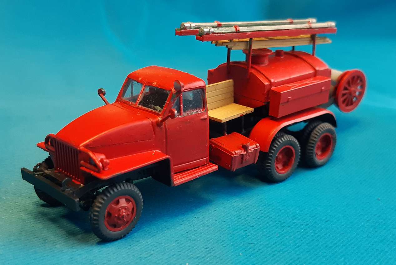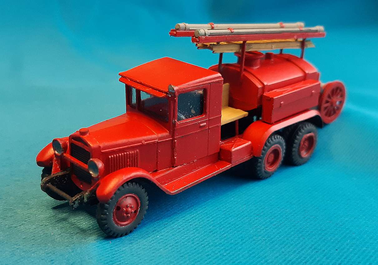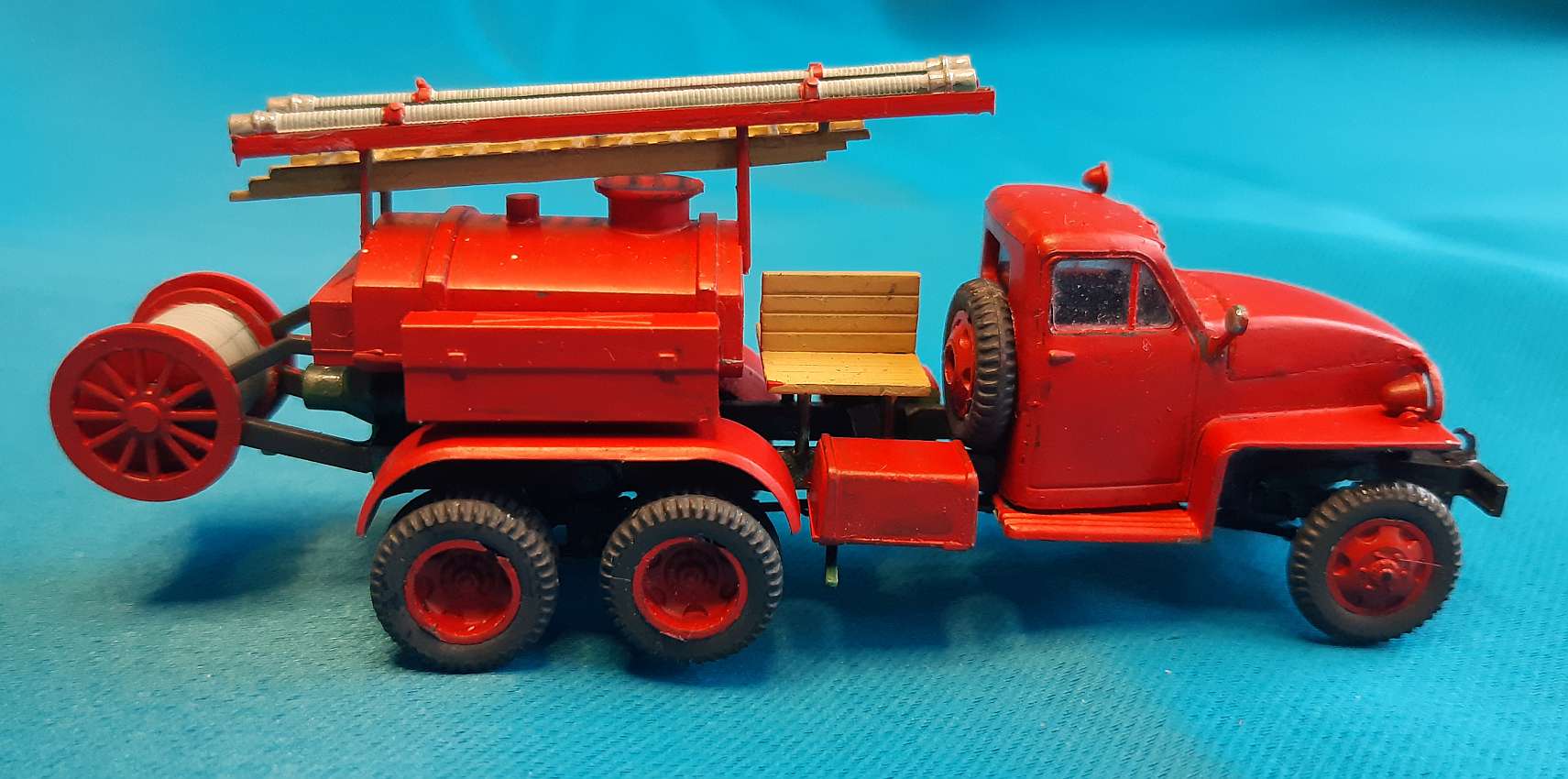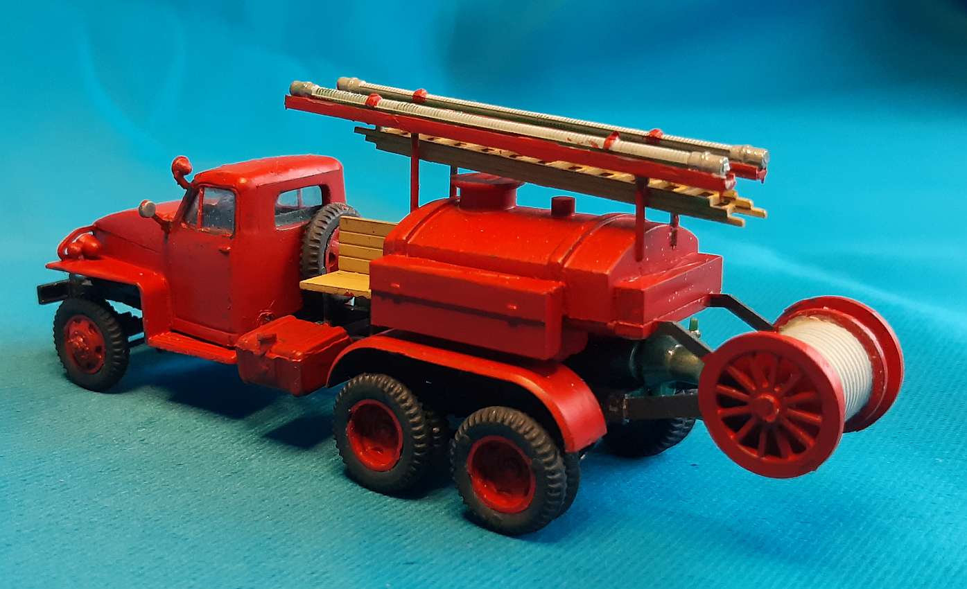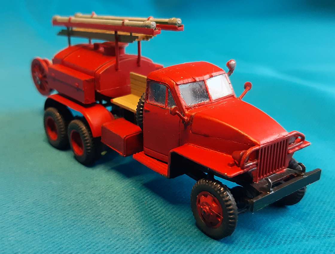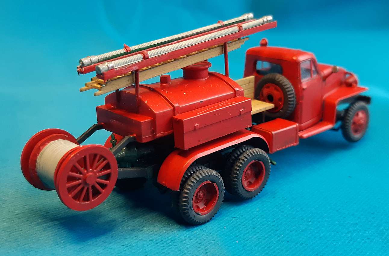 Based on the ZIS-6, duel rear axle truck, the rear tray has been replaced with a water tank and two side and one rear mounted, tool boxes. On top of the tank are mounted ladders and hoses and at the rear is a hose reel and water pump. Other 'PZM' additions to the basic truck kit including a fire bell and a small 'tray' that fits between the cabin and the water tank.