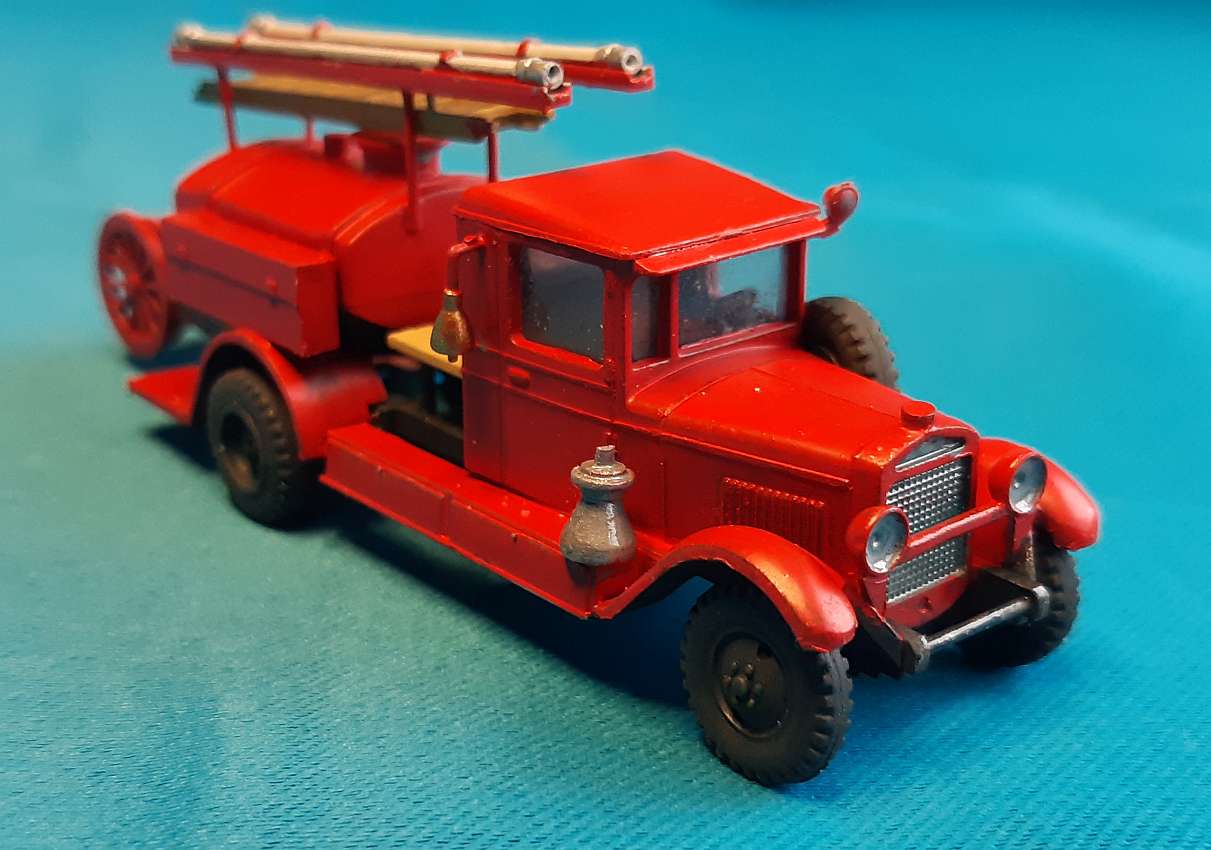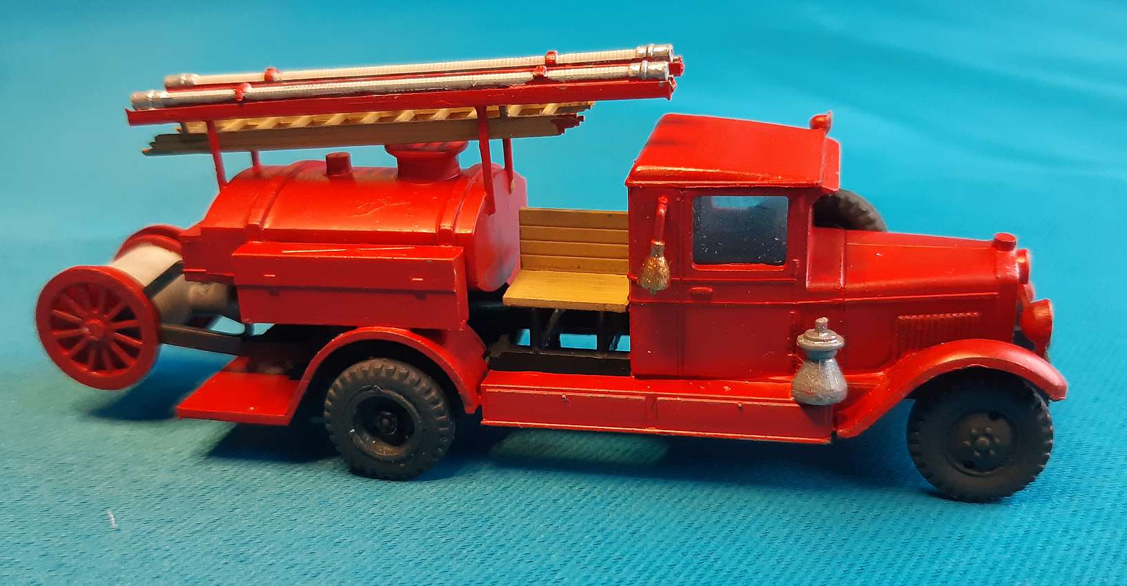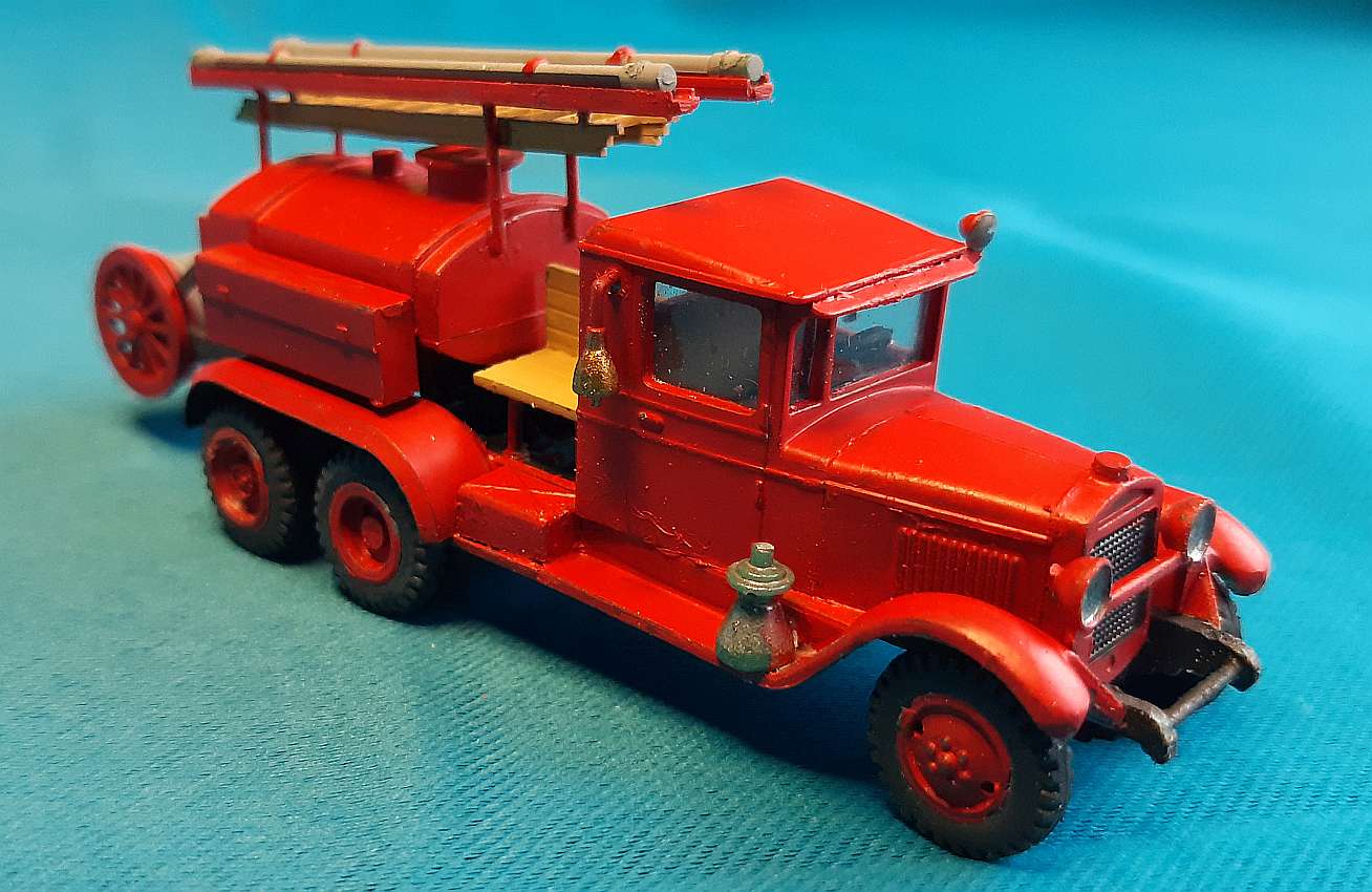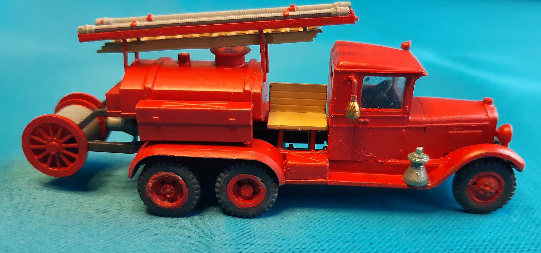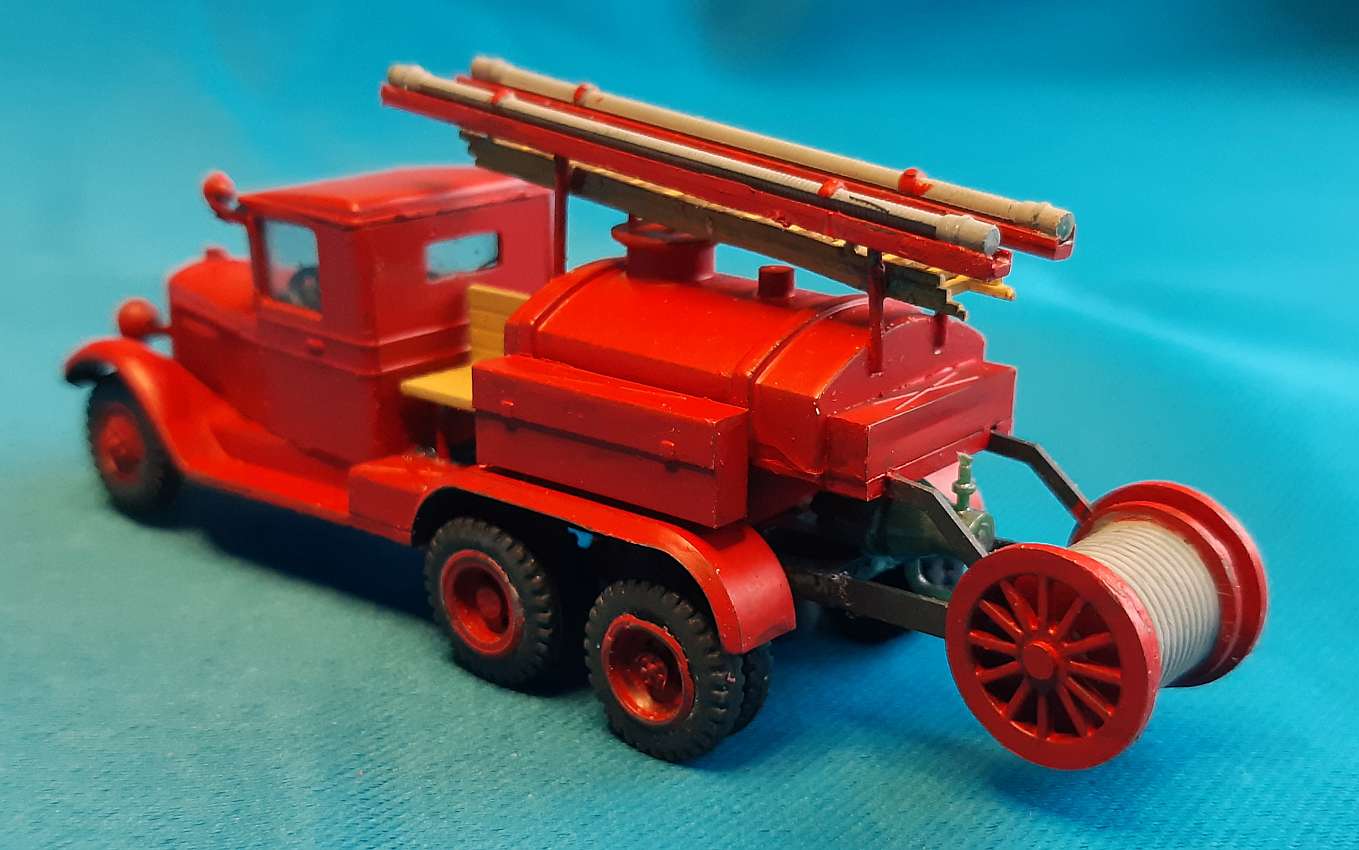 Based on the ZIS-6, duel rear axle truck, the rear tray has been replaced with a water tank and two side and one rear mounted, tool boxes. On top of the tank are mounted ladders and hoses and at the rear is a hose reel and water pump. Other 'PZM' additions to the basic truck kit including a fire bell and a small 'tray' that fits between the cabin and the water tank.