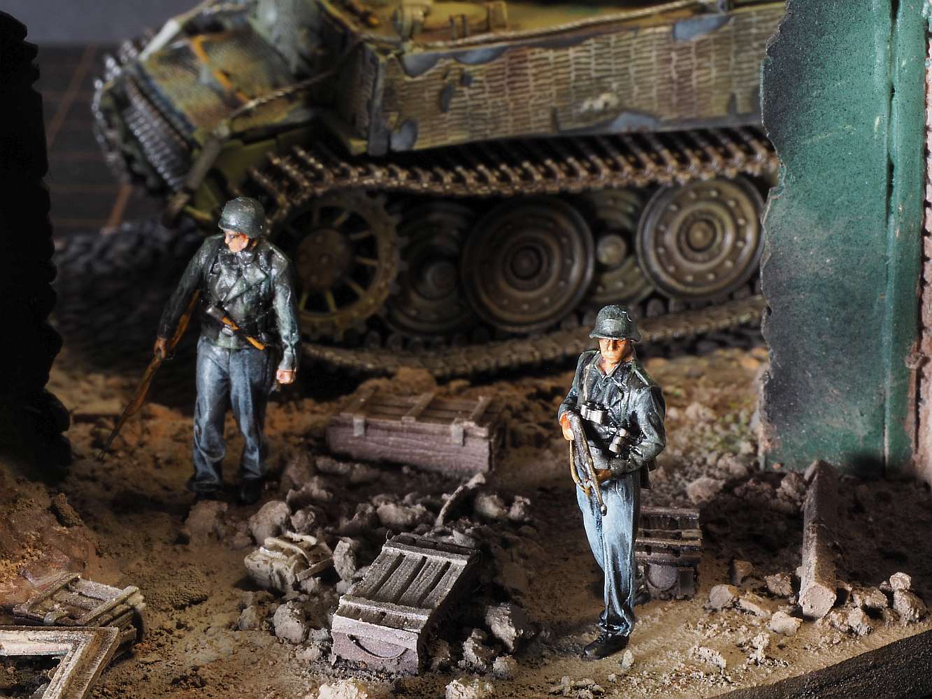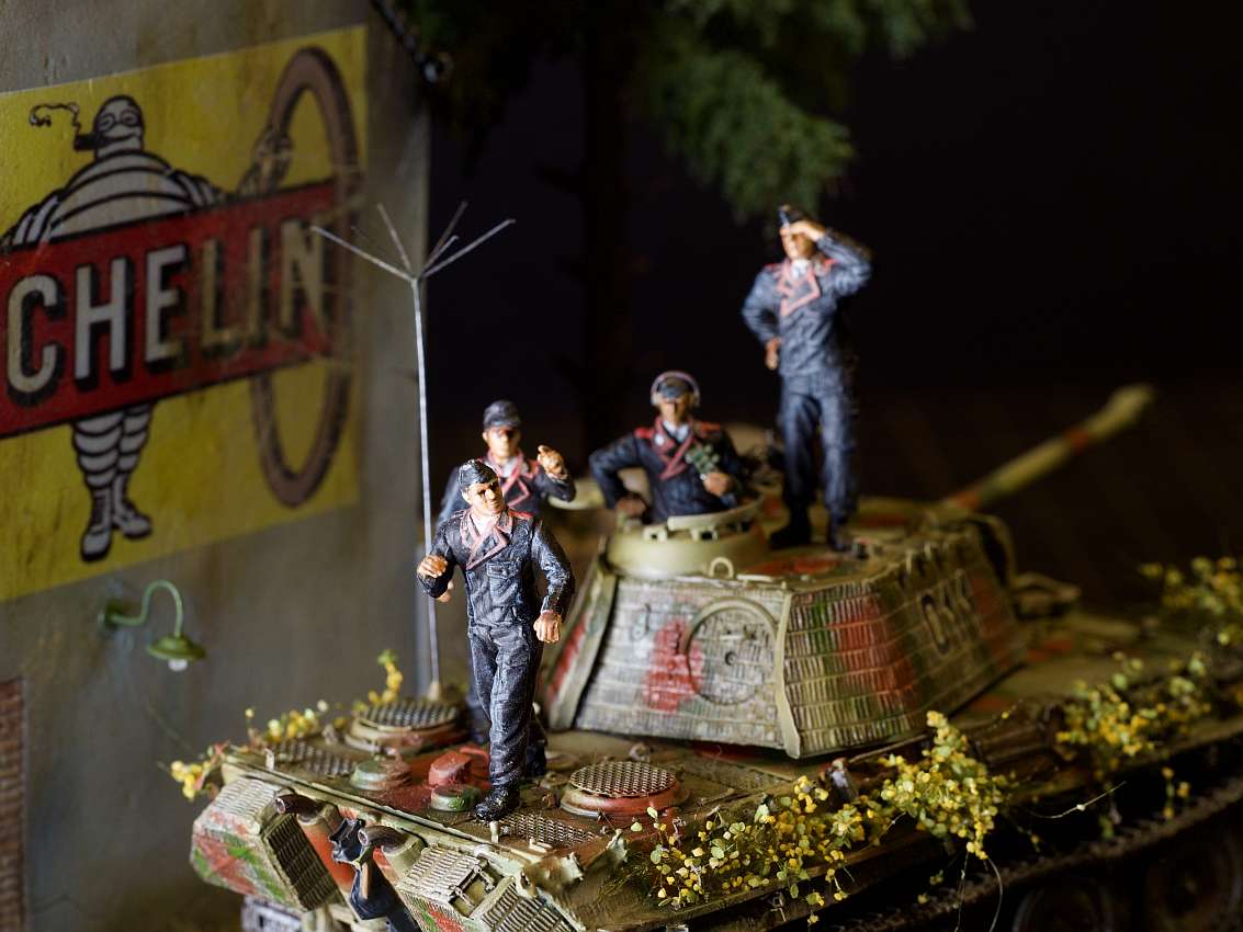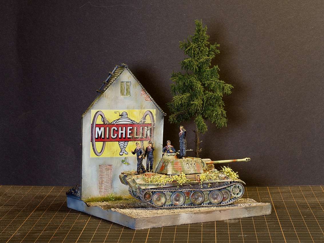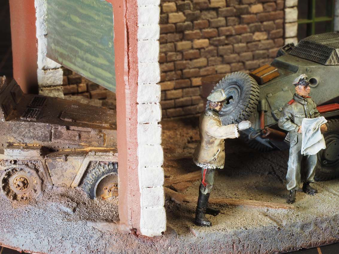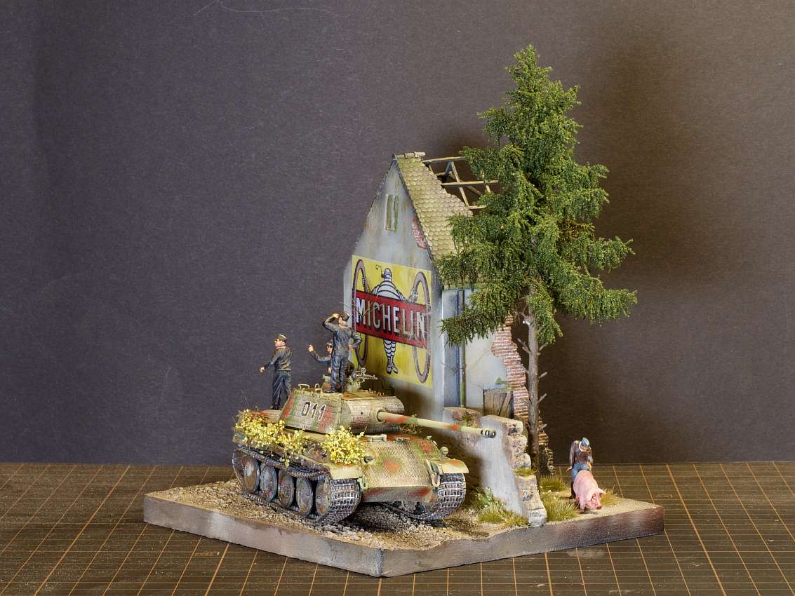 Built model en diorama by Walter Hendriksma - Dragon Nashorn, Germania Figuren Veldkeuken poppetjes, MIG Duitse mechanicus, Preiser figuren, DIO72 Russisch huisje, FIRMA49, Germania en Geoffey etenswaren, Plus een 3D veldkeuken