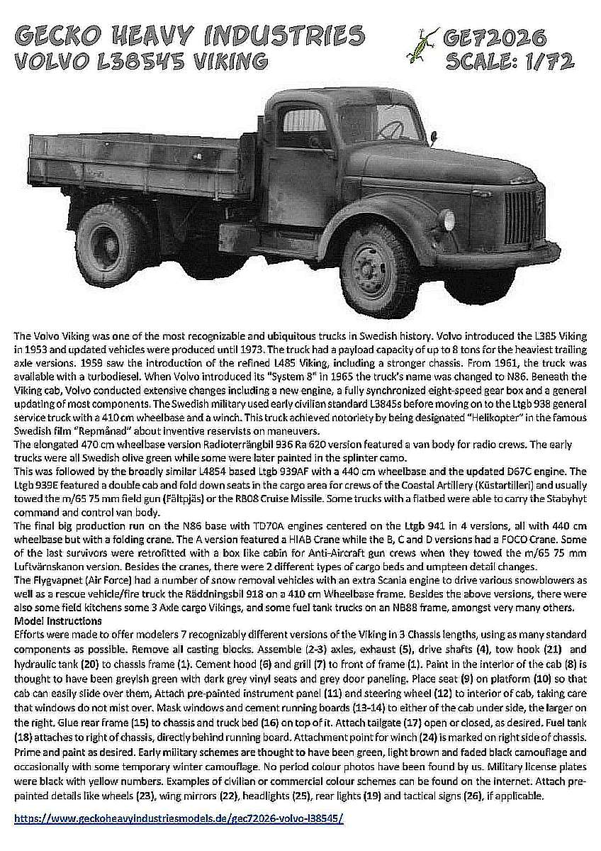 In December 2022, Gecko Heavy Industries was pleased to release via Rebell Hobby in Sweden a comprehensive 1/72 resin ground support set for the legendary Saab J35 Draken, suitable for the diorama builder. After more than 5 years of research from photos and manuals as well as contacting Swedish museum for detailed photos and measurements, it was possible to put this set together. It featured the MB319 Servicebil 405 for electronics maintenance, the Kraftvagn 745B GPU, the Hydraulprovningsaggregat 804, the Omfornarvagn 802 “Humlan” electric servicing unit, 3 jacks, two different ammo carts “Ammunitionslapkärra,” ammo boxes for Aden 30 mm cannon munitions, a fluid replenishment cart, the combination tow bar, as well as oxygen, nitrogen and compressed air carts (Syrgaskärra 873/Kvävgaskärra 875/Tryckluftkärra 8051). Some instrument panel decals and rubber tubes are provided. This really offers ALL known GSE used on the Draken as well as some other Swedish jets of that era that are large enough to be cast in resin or that where ever depicted on a reference photo. Some of this equipment was also used on Finnish, Danish and Austrian Drakens.