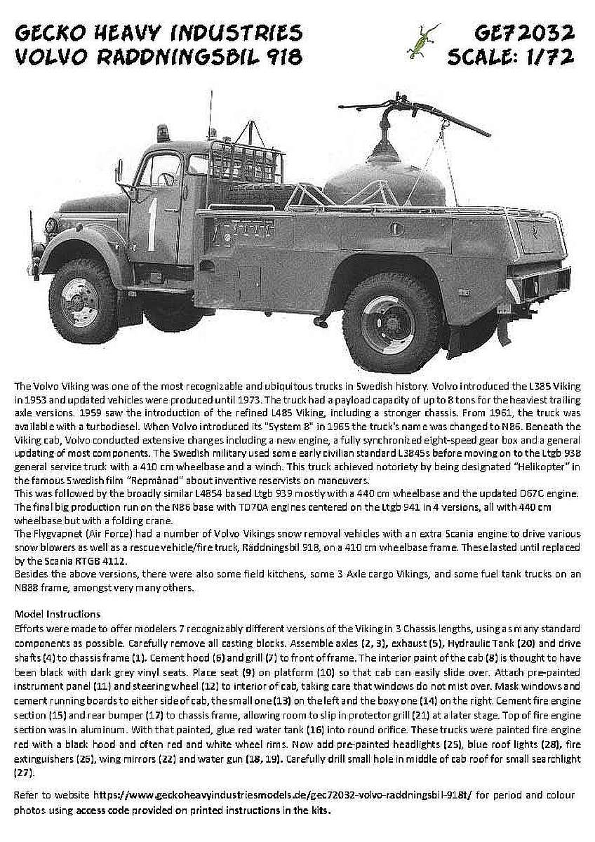 Kit 72032 - Volvo Räddningsbil 918 Flygvapnet Rescue Truck