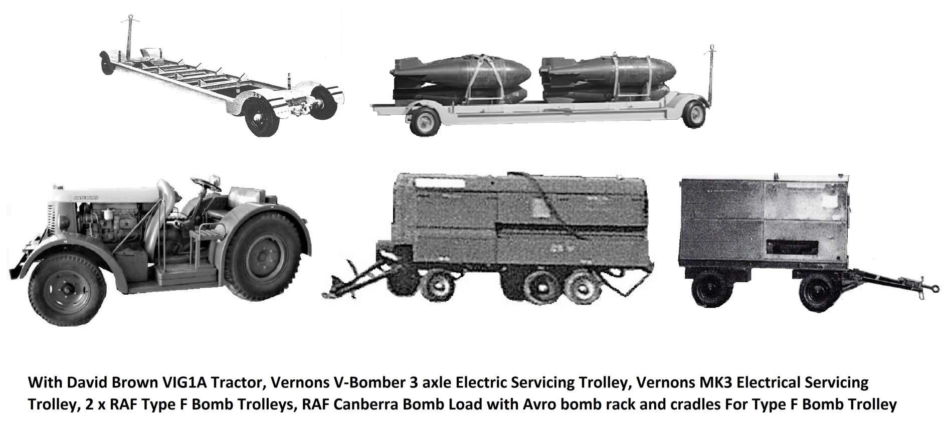 on RAF airfields and the Vernons 3 Axle Trolley was widely used for V bombers and large transports until the early 1970s. The RAF Type F Bomb Trolley