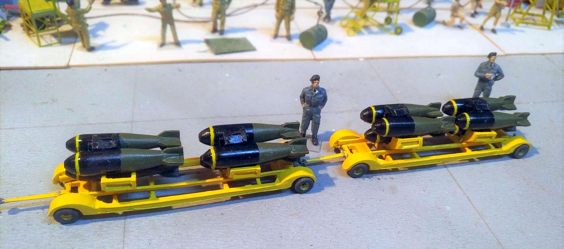 Trolley, 1 x Vernon MK3 Electrical Servicing Trolley, 2 x RAF Type F Bomb Trolleys, RAF Canberra Bomb Load with Avro bomb rack and cradle For Type F