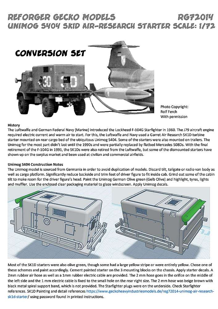 Kit reg72014 - REG72014 Unimog S404 Air Research SK1D Flugfeld (Airfield) Starter for F-104G Starfighter (with decals by Black Lion) Complete Conversion Set