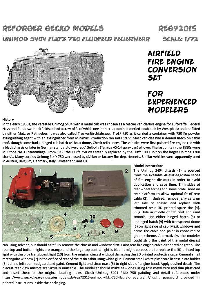 Kit reg72015 - REG72015 Unimog S404 KIKfz 750 Flugfeld Feuerwehr/Luftwaffe Airfield Rescue Truck Complete Conversion Set