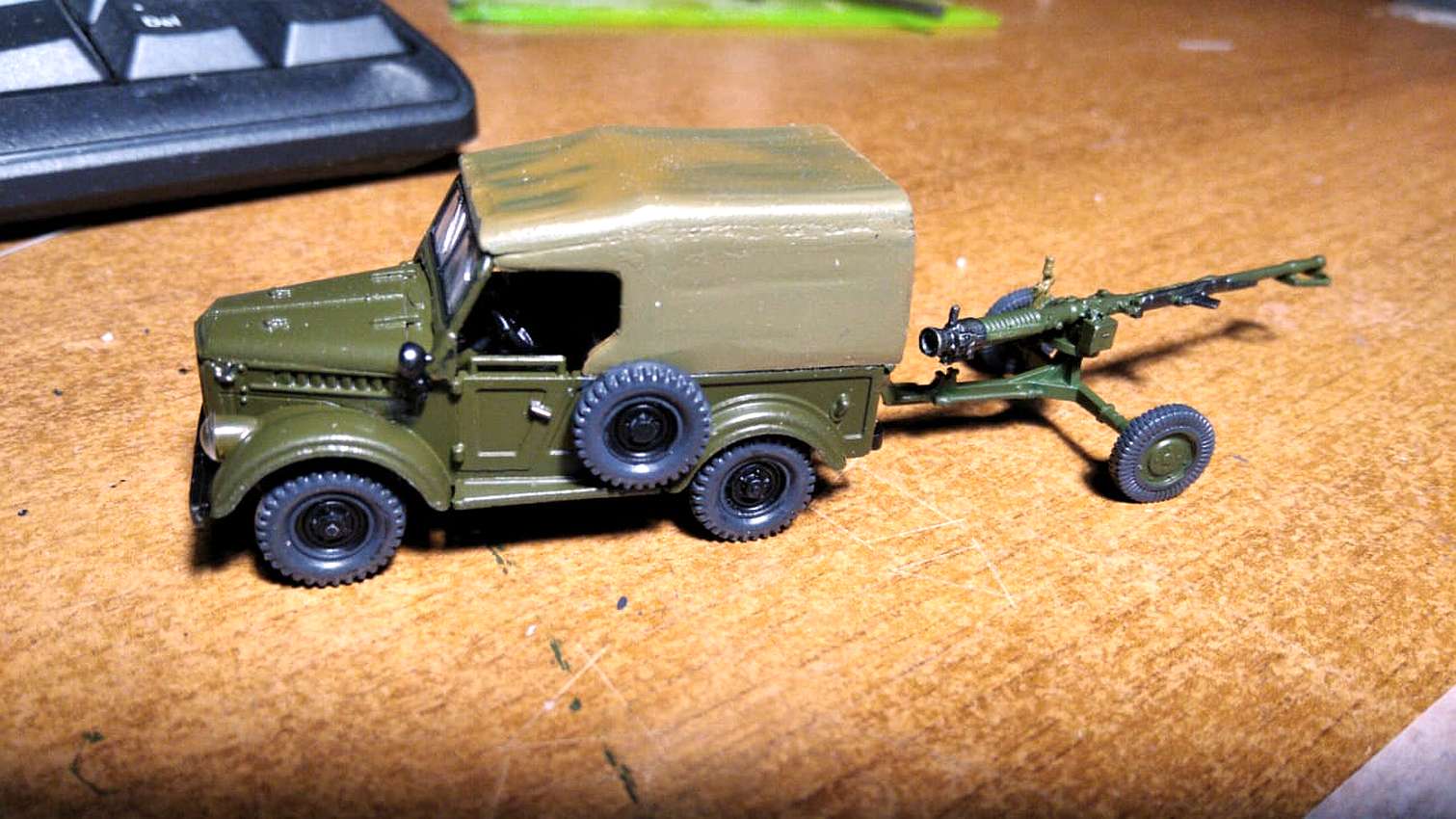 The model consists of a standard plastic set of Gaz-69 and a resin set of an 82 mm bzk vz.59 recoilless gun