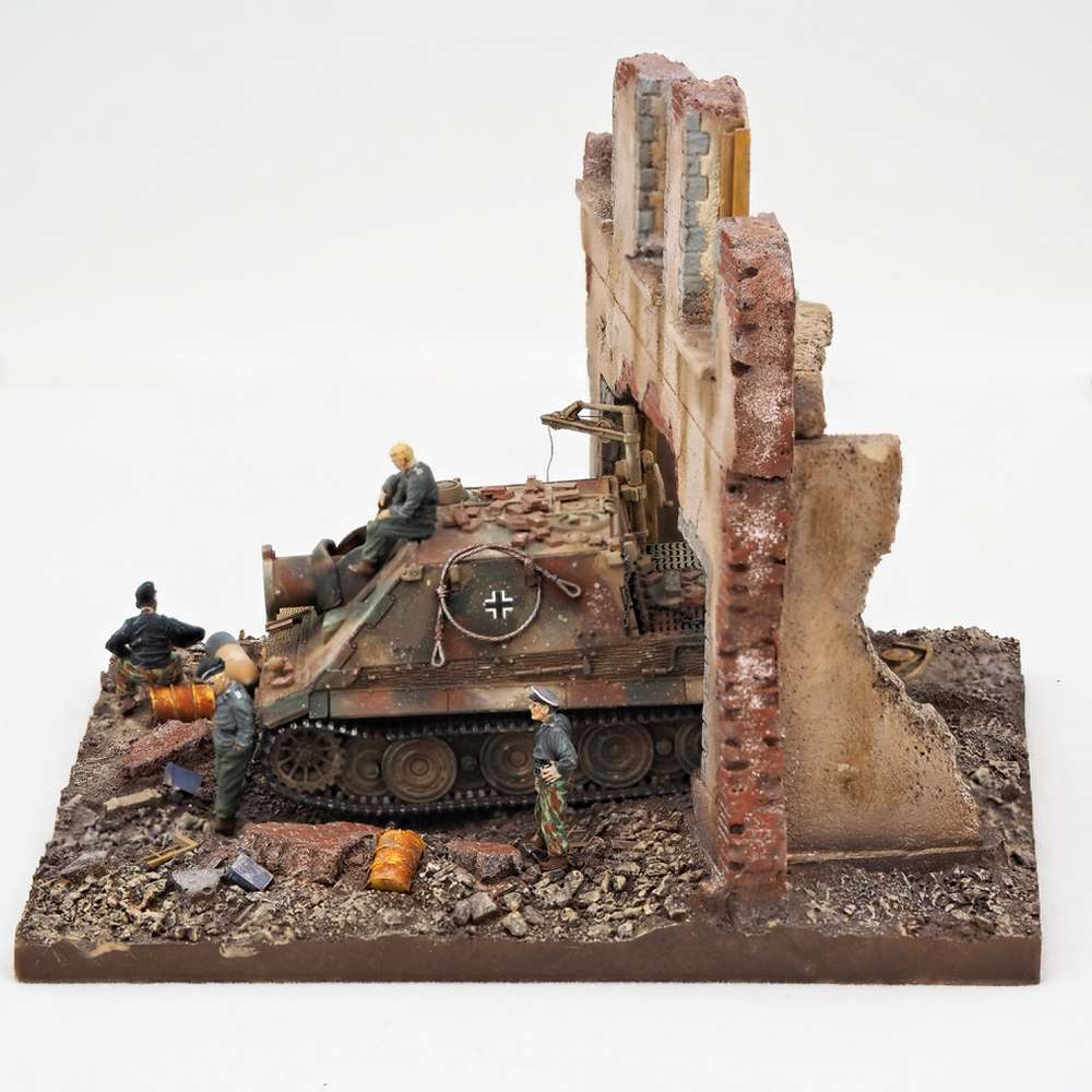 It consists of a Dragon Sturmtiger with an Attack resin conversion set with Zimmerit. The figures are from CMK and made from resin.