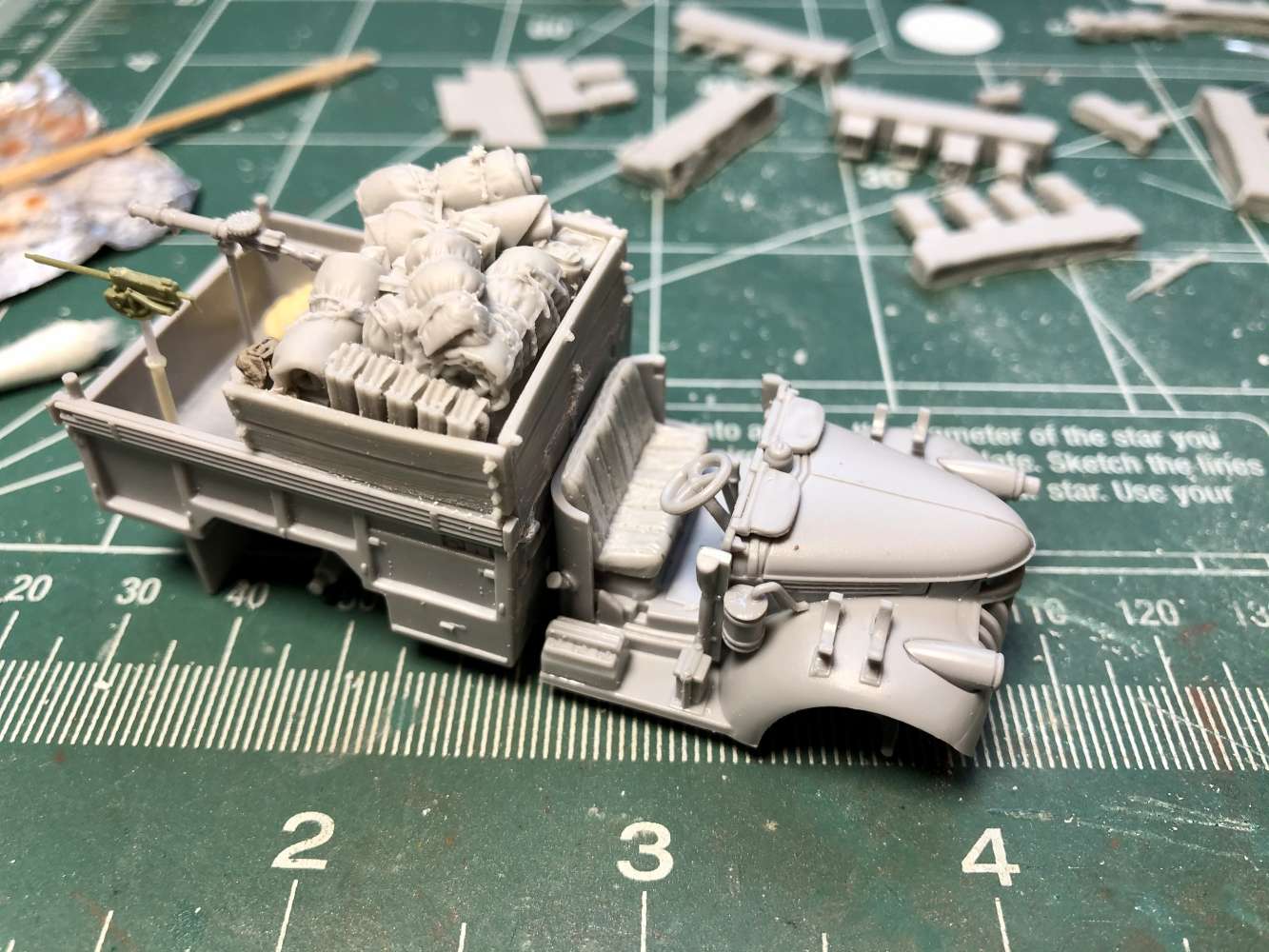 Their typical Jeeps and Chevrolet trucks I built from Airfix kits with Milicast resin parts and lots of scratch building. The Chevrolet truck is from Dragon with a Black Dog resin conversion set.