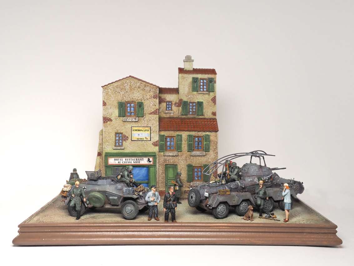 The diorama depicts a scout unit during the Blitz Krieg in France.