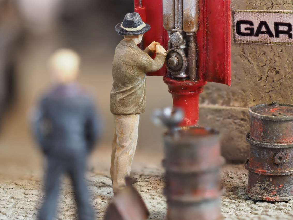 The gas pump is by Attack and the figures are from Milicast and Germania 3D printed figures. The dog is called "Vrolijk", but that is besides the point.