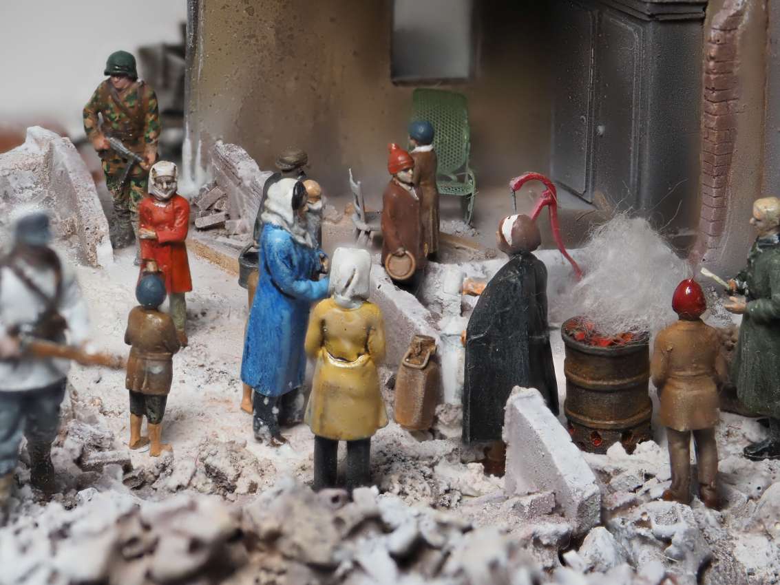 This diorama is situated in Warsaw during the uprising of the Polish resistance against the German Army in August, 1944.