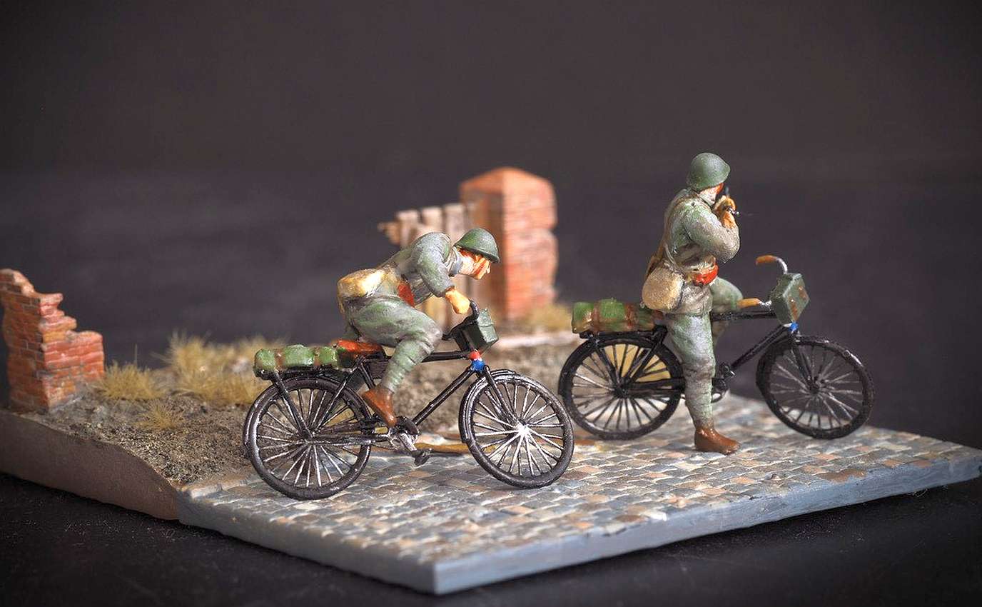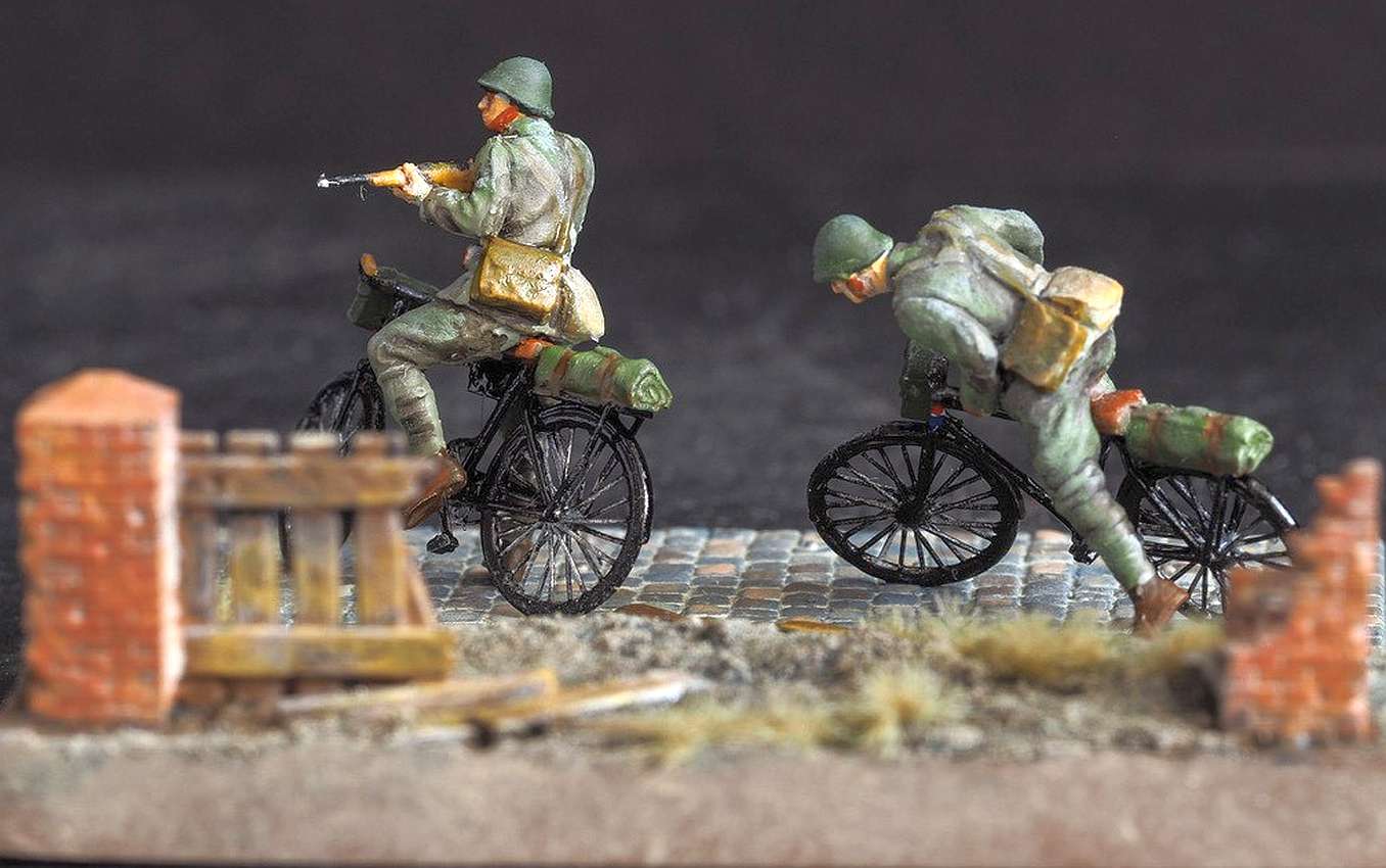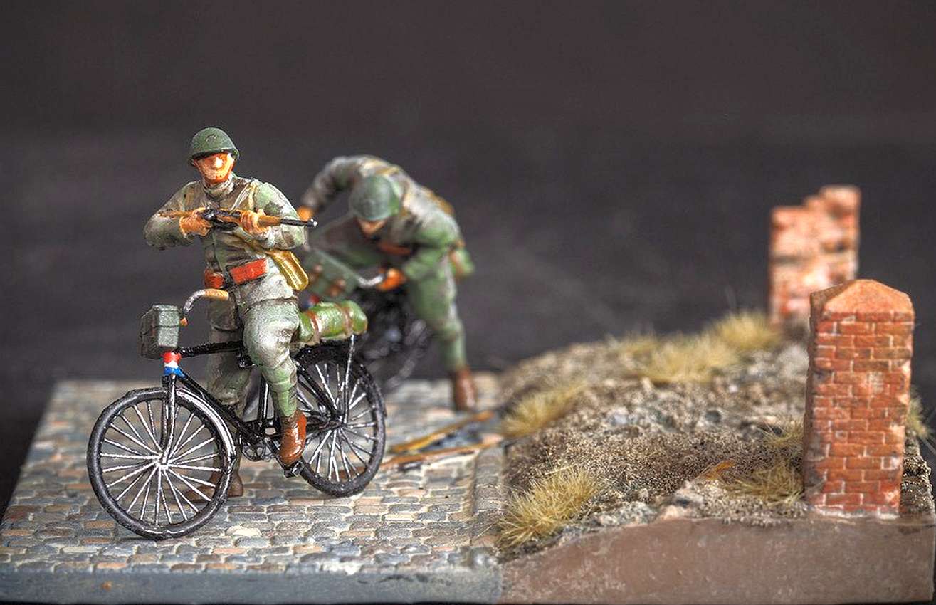 Diorama 31 - Dutch soldiers on bicycles. - (White Stork Figures and Mironious diorama)