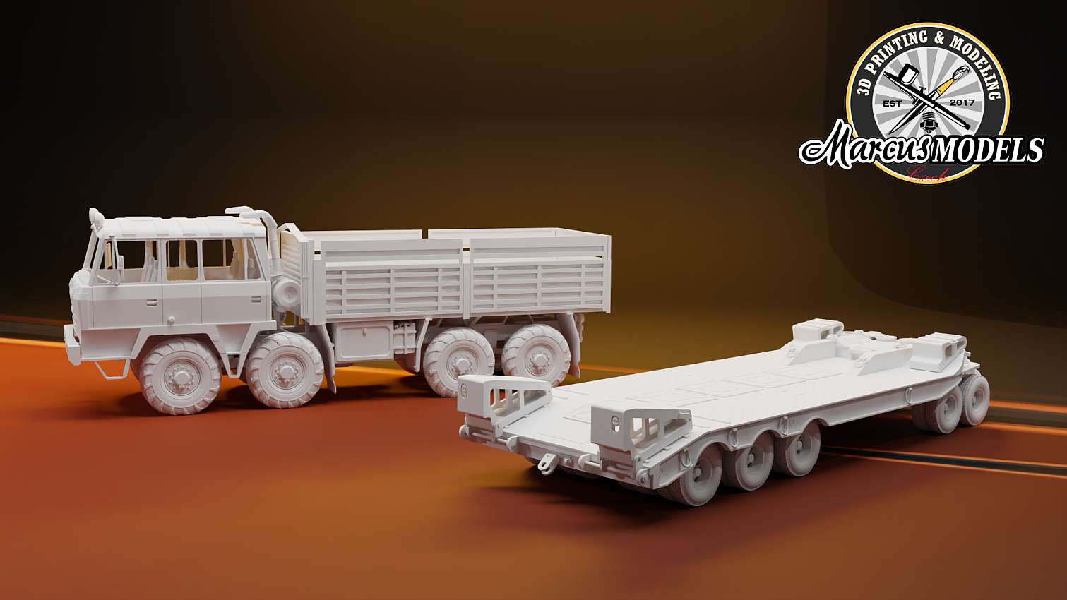 "Marcus Models" - Set stavebnic T815 VT 8x8 + P50 (set of tractor and low loader) possible as military