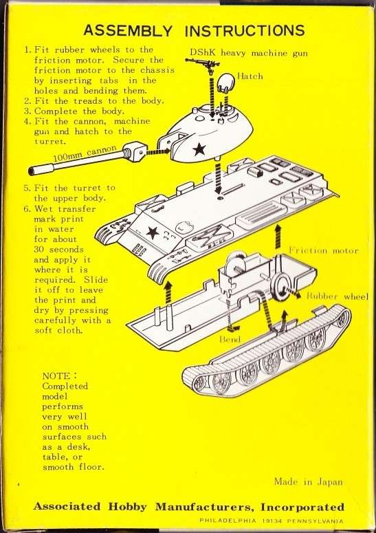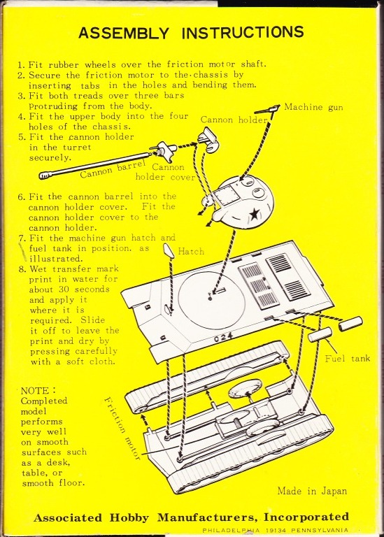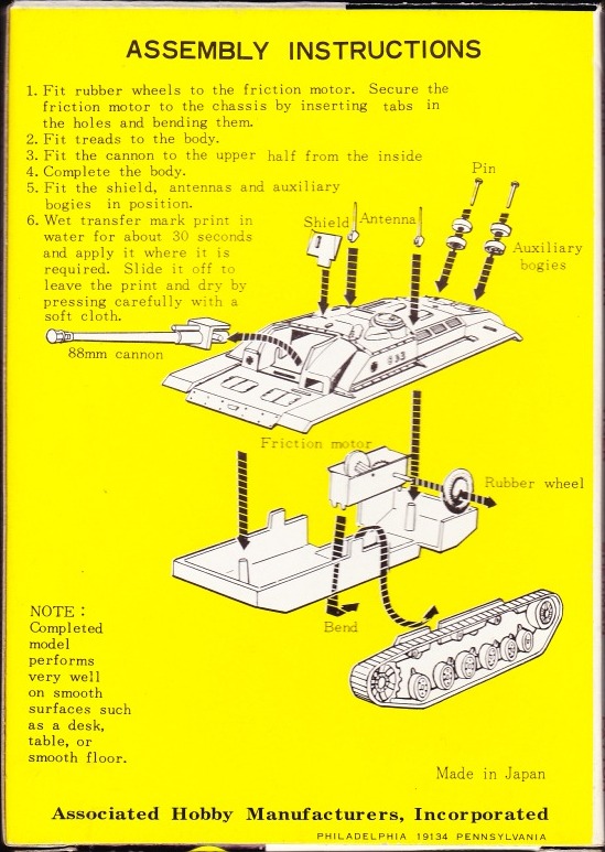 Bandai is Japanese large toy and model manufacturer. In early 1970s, Bandai released six small tank models within USA. These models are described as 1/72