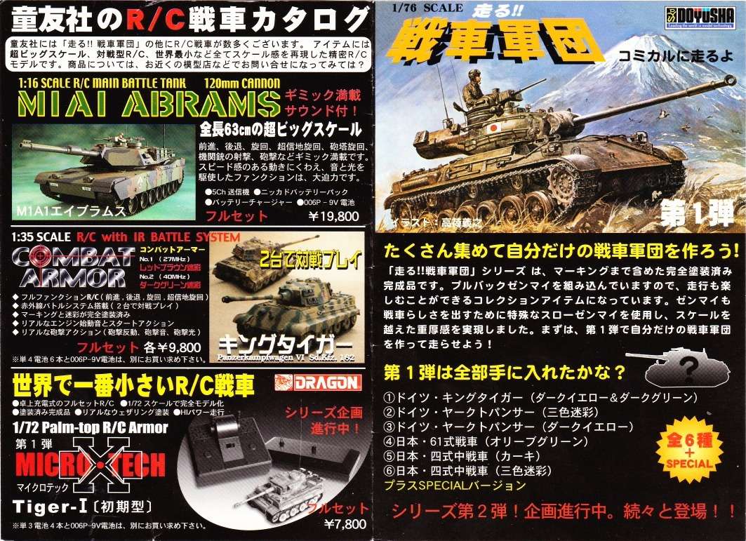 In 1983, Doyusha re-released all of twelve 1/76 scale military models of Midori with pullback motor.
