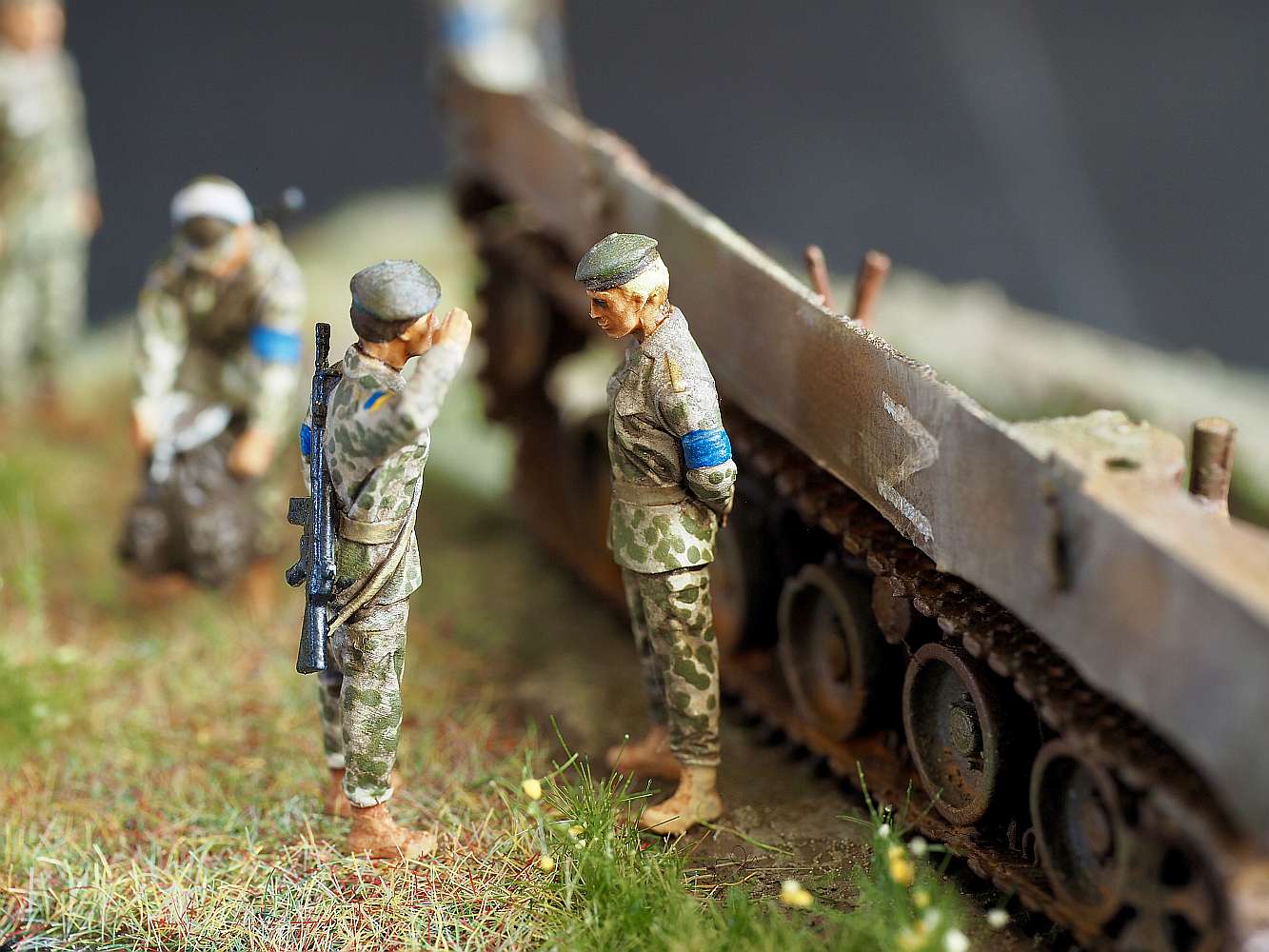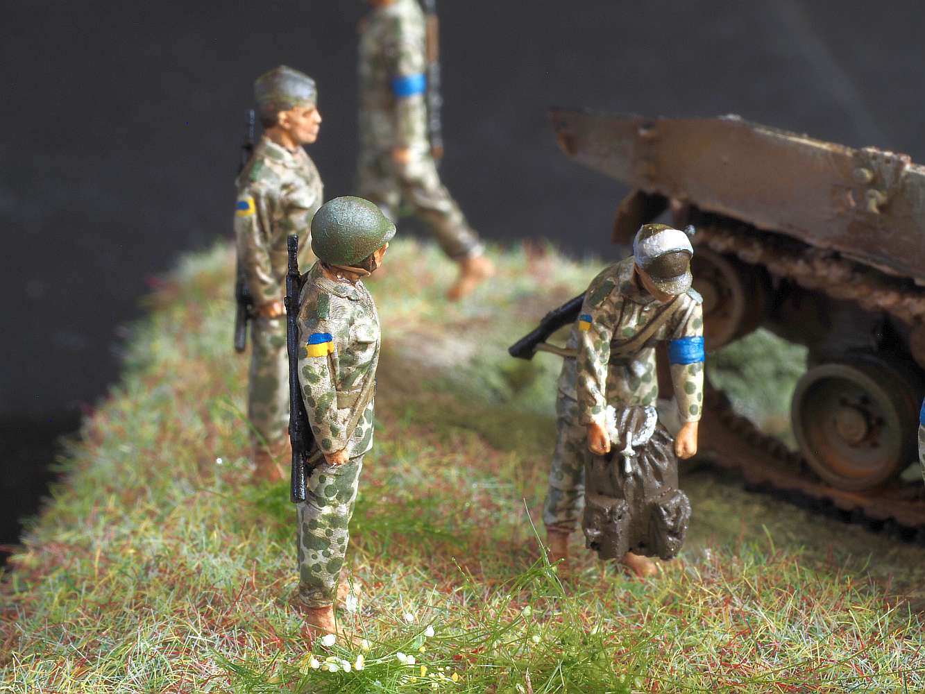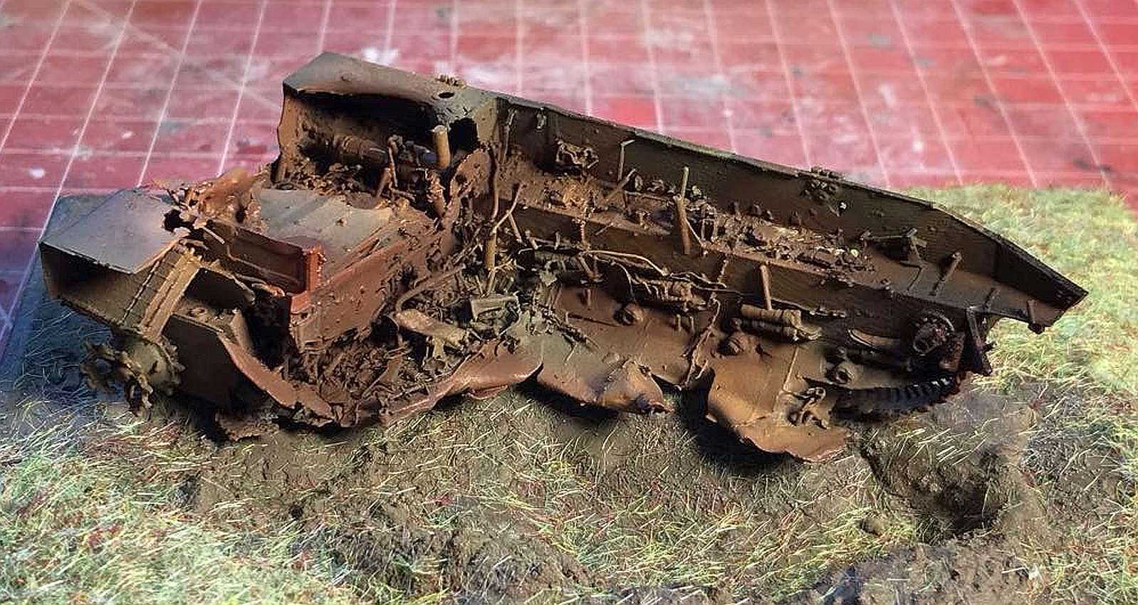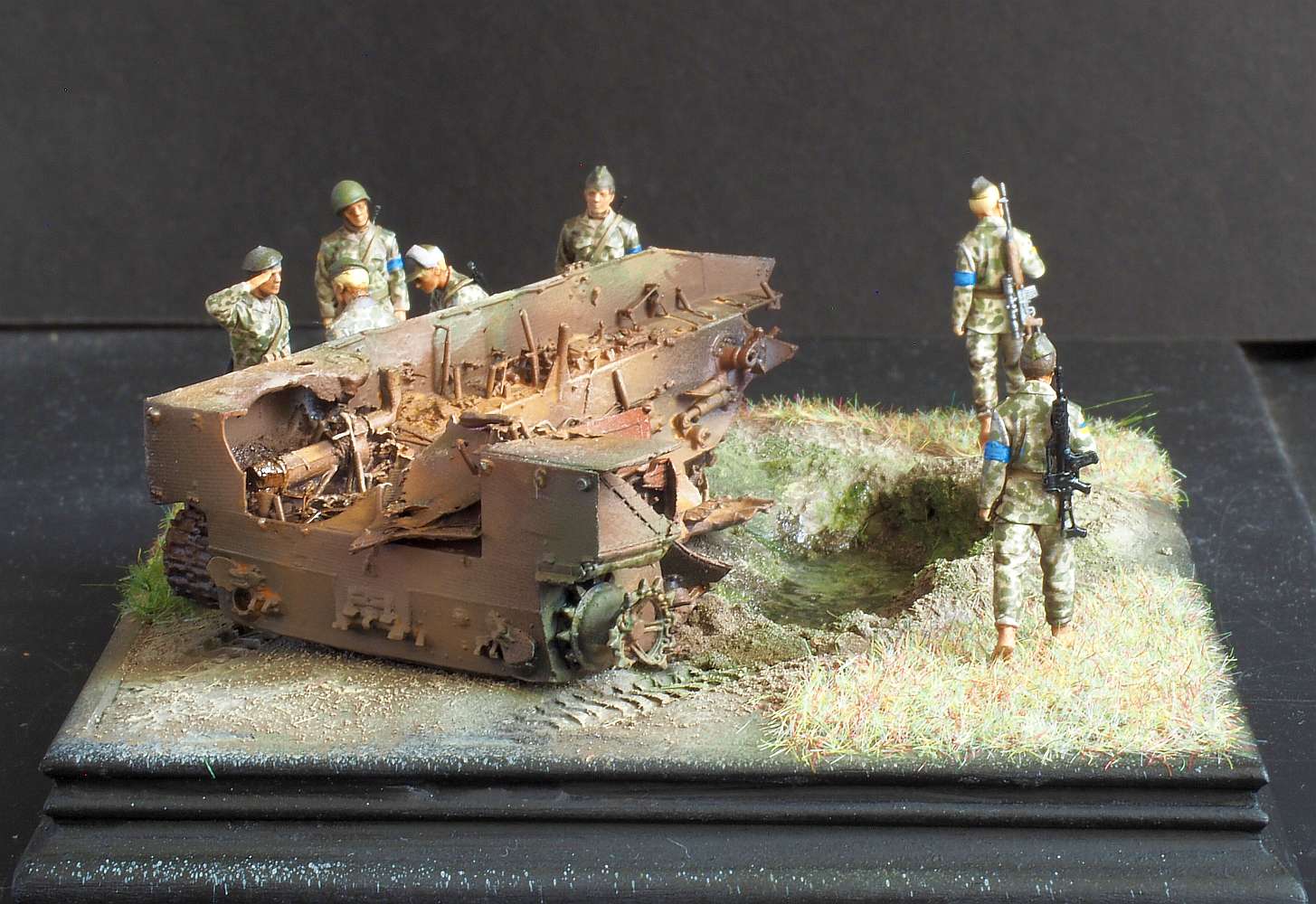 This is a new-ish 3D printed model from FC-ModelTrend, a destroyed Russian BMD-3. I replaced some of the smaller details and made a small scene, representing