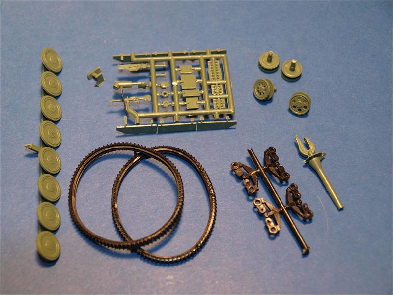 The box contents 2 plastic bags with the plastic parts in different colors an instructionsheet and decals.