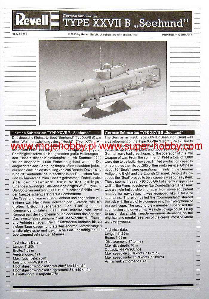 For "ModelStories" review of kit s006 - German U-Boot Type XXVIIB "Seehund" visit: