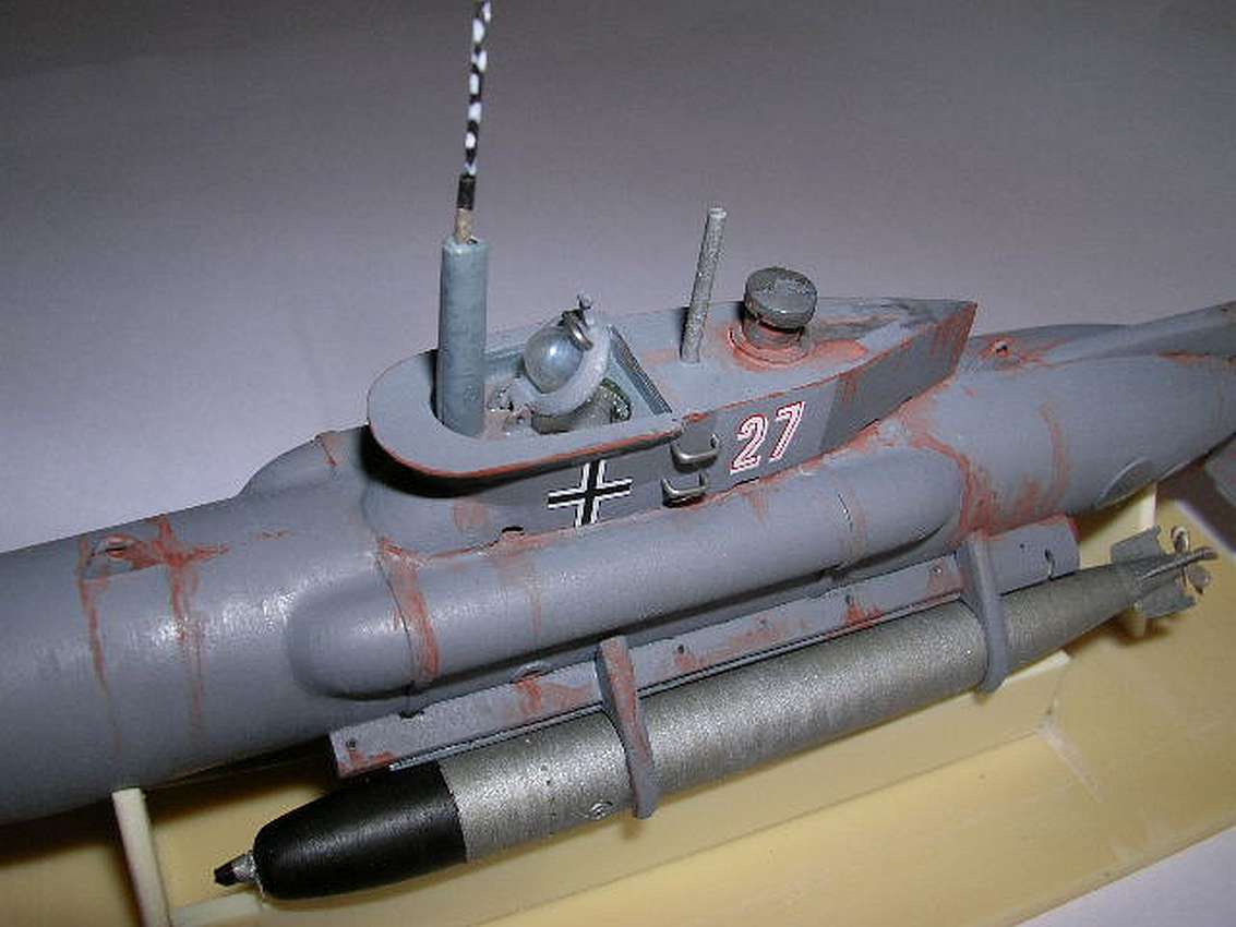 1. Two loops were added to the fore and aft portions of the upper hull. Reference pictures of other Type XXVII u-boats show them. ICM should really