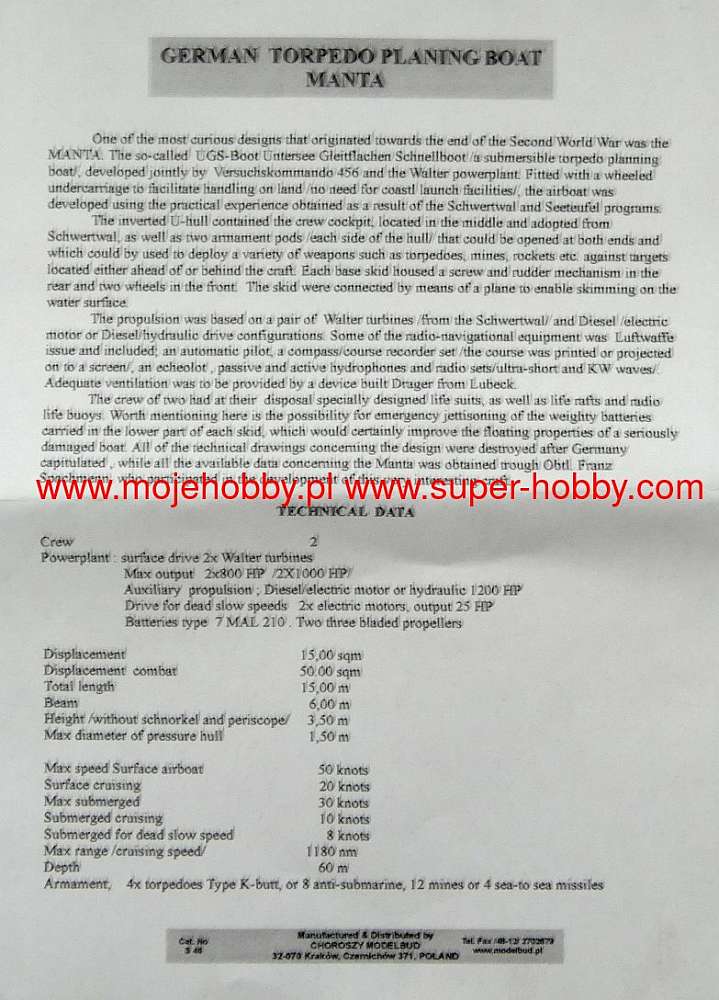 Kit S45 - Germany Torpedo Planing Boat "Manta"