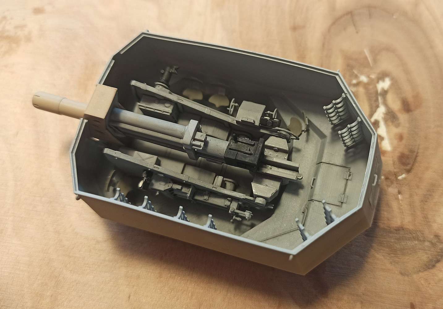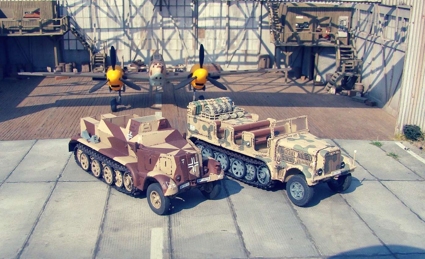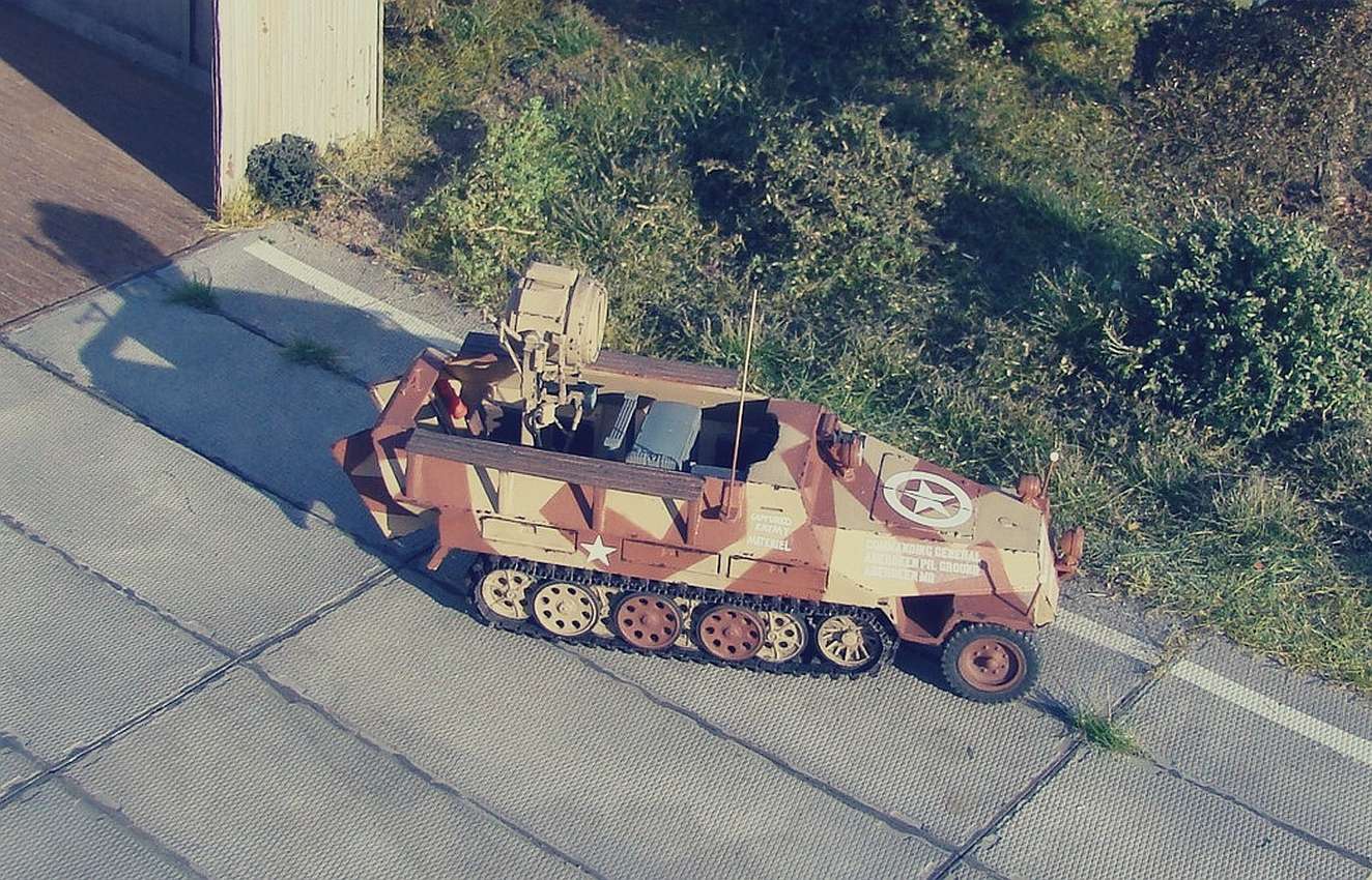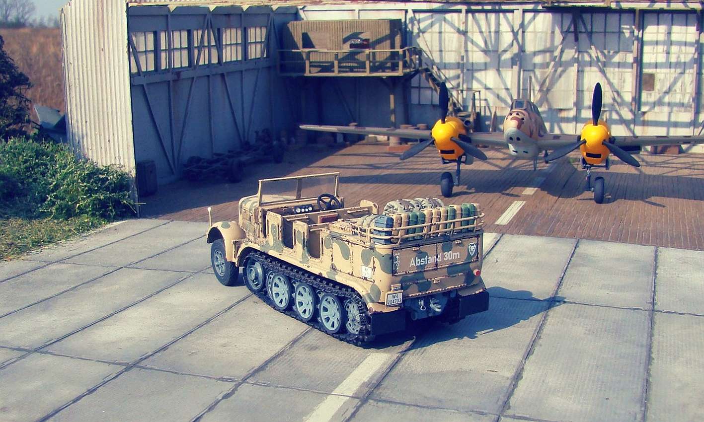 It never existed but in the world where there is growing numers of fictional projects. It's early version of SdKfz 251 with front from SdKfz 247 and it has short 75mm gun on the top. The gun is metal from RB