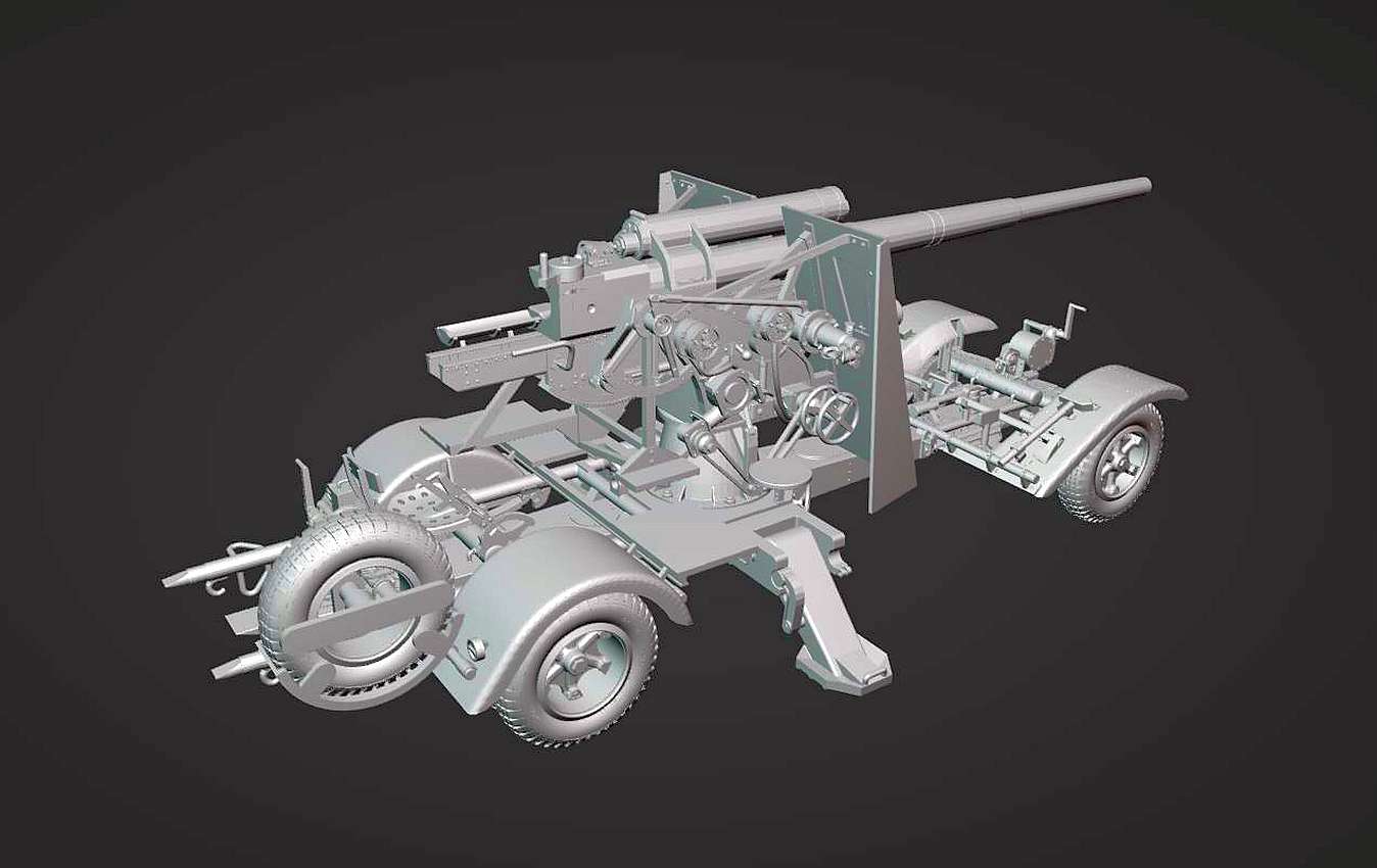 The Flak 41 is fully 3d printed but require aluminum barrel, I recommend "German 88mm Kw.K 43L/71 E-50 barrel (one part)" from ABER.