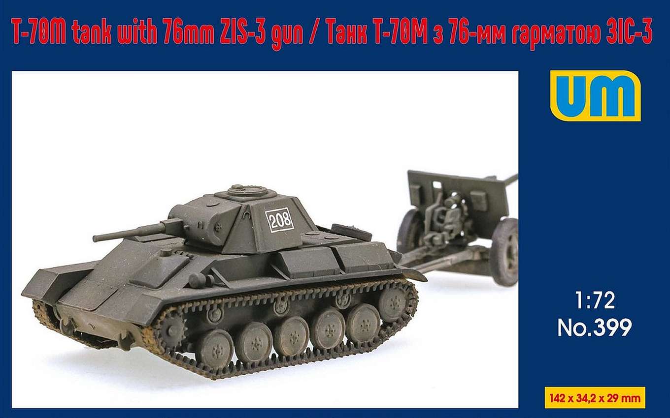 Virtually the same kit as the T-70M but with a larger (two hatch) turret and gun...and different decals. As with the T-70 there are 107 'long run' injection moulded parts (including 'link and length' tracks) with fine raised detail. There's also a small fret of photo etched parts. The decal sheet has markings for just the one Soviet tank (a colour three view is on the back of the box). All road wheels and suspension arms are separate mouldings, the gun and turret are designed to move and