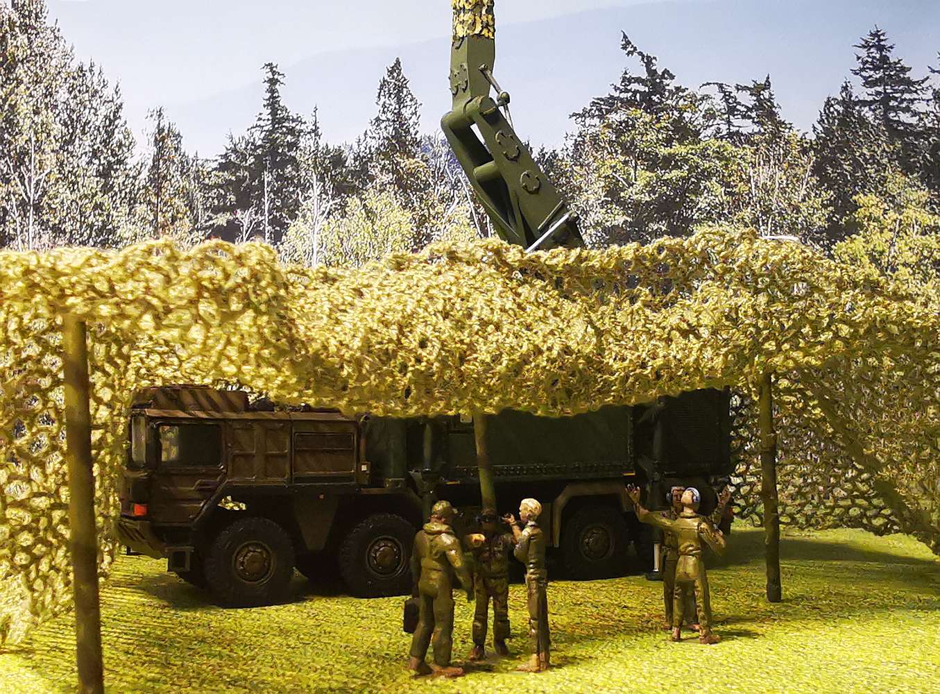 der 3. Batterie des FRR-11 in der Vitrine. Das Startfahrzeug im Hintergrund eines Fotos ist ein altes Resinmodell von airmodel products (SA-6 Gainful,