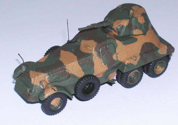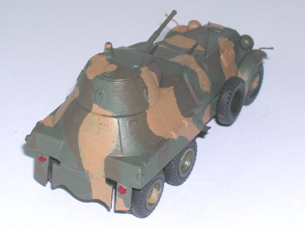 Die Bewaffnung wurde nicht verändert, da sie sich bewährt hatte. Die Produktion soll bis zum Ende des Krieges gelaufen sein, allerdings etwas auf "Sparflamme", da die reine Panzerproduktion Vorrang hatte. Auch dieser Bausatz stammt von AER aus Moldawien. Ich konnte ihn über den damaligen Importeur TAPO aus Berlin erhalten. Gegenüber dem Bausatz des BA 11 hatten sich einige positive Veränderung in der Qualität der Abgüsse vollzogen. Die Hersteller hatten sich bemüht, den gesamten Unterbau des Modells genauer zu fertigen.