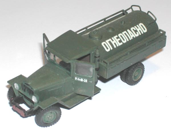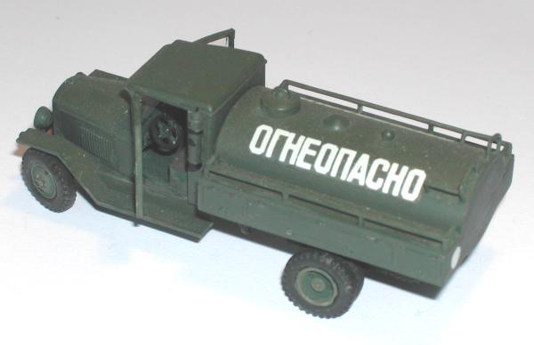 Bei diesem Fahrzeug handelt es sich wahrscheinlich um einen Umbau während des Krieges. Hier scheint die Zisterne eines BZ 35 vom ZIS 6 so modifiziert worden zu sein, dass sie relativ problemlos auf das Fahrgestell eines ZIS 5 aufgebaut werden konnte. Von der Tragkraft der Fahrgestelle her war dies kein Problem und da die Rahmen identisch waren, gab es keinerlei wichtige Hindernisse, die einem solchen Umbau im Wege gestanden hätten. Interessant ist, dass der Kasten mit den Armaturen und Pumpen am Heck entfernt worden ist, während die Gerätschaften zum Befüllen der Fahrzeugtanks an den Seiten erhalten geblieben sind. Es hat den Anschein, dass Kolja beim Betanken von Fahrzeugen und Geräten aus dieser Version eines Benzintankfahrzeuges externe Pumpen verwendet hat, um die Zisterne vollständig leeren zu können.