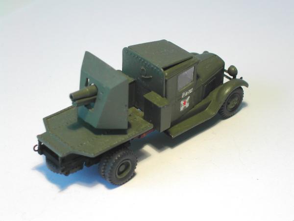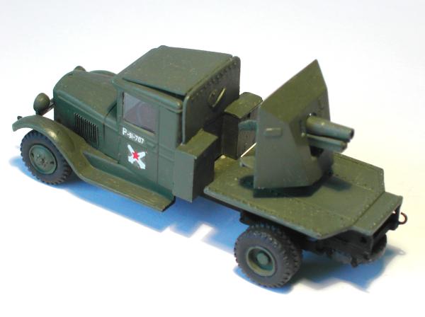 Von AER aus Moldavien wurde ein Bausatz in Gießharz auf den Markt gebracht, der die Kombination des Geschützes mit einem Fahrgestell des ZIS 5 beinhaltet. Da ich genügend Bausätze des LKW habe, war ich nur an den Zusatzteilen für den Geschützaufbau interessiert. Der Inhaber der Firma TAPO war so freundlich, mir nur die benötigten Teile zu besorgen, sodass ich Geld sparen konnte.