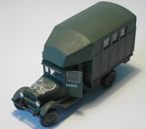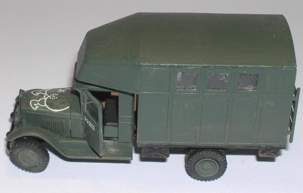 Um es gleich vorweg zu sagen, bei diesem Fahrzeug habe ich so meine Zweifel, dass es existiert hat. In keiner Quelle, auch nicht im Internet habe ich irgendeinen Beleg für eine solche Konfiguration gefunden. Laut Bauanleitung soll es sich um ein Fahrzeug handeln, das bei den sowjetischen Luftstreitkräften als Werkstattwagen eingesetzt gewesen sein soll.