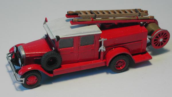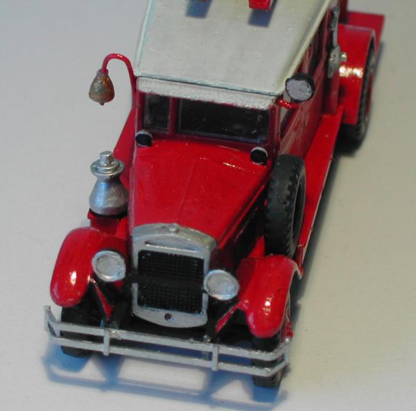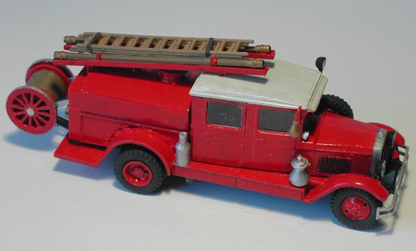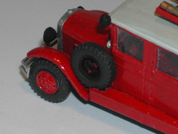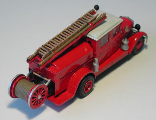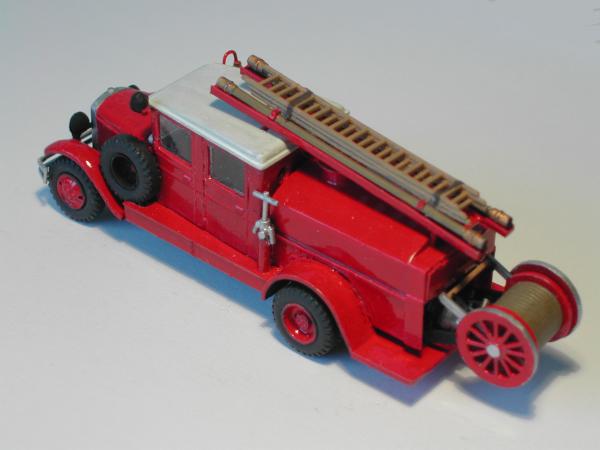 Neben der neuen Doppelkabine wurden die Seiten des Wassertanks bis zum Rahmen verlängert, die Lagerung für die A - Rohre und die Sturmleitern verändert. Die Halterung für die Schlauchhaspel am Heck wurde realistischer gestaltet, das Lager für das Ersatzrad entsprechend dem Foto geändert. Außerdem entstanden die Signalgeber und der Suchscheinwerfer neu, da die Teile aus dem Bausatz des PMZ 2 von PST nicht zu verwenden waren. Auf den Fotos kann man noch mehr Einzelheiten erkennen, die nichts mehr mit dem Bausatz von PST zu tun haben.