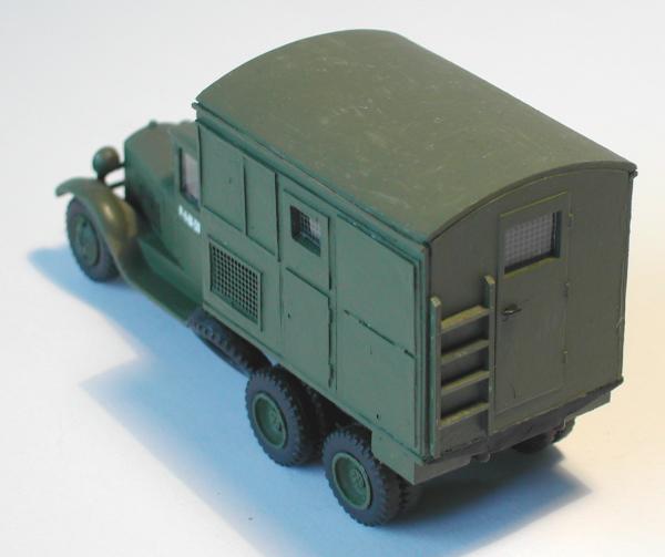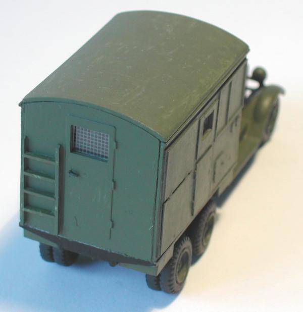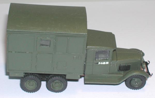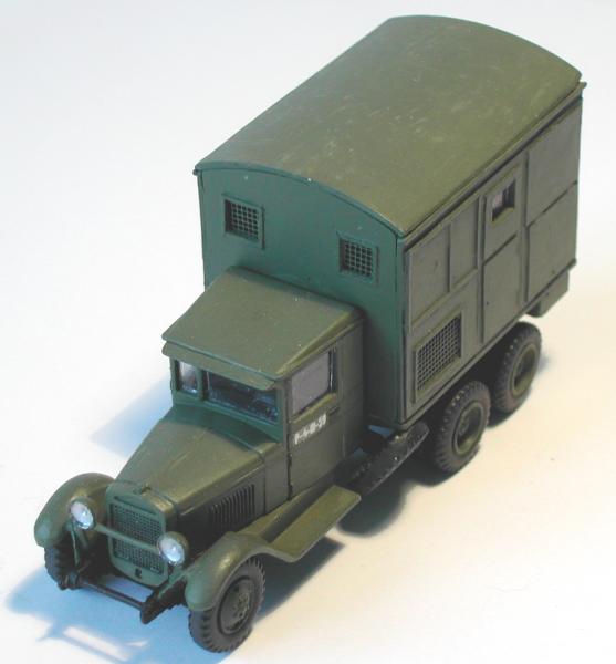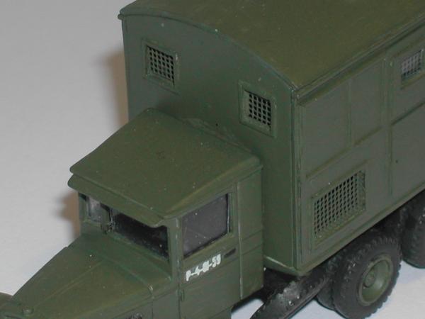 Fahrzeugbasis und Aufbau sind miteinander verbunden worden und ich hatte das nächste Modell für die umfangreiche ZIS - Familie fertig. Ich wurde nur stutzig, als ich meine Bastelmaterialien zusammen geräumt habe. Eigentlich hatte ich einen angedeuteten Dieselmotor vorbereitet, der in den Koffer eingebaut werden sollte. Der lag aber nach Fertigstellung des Modells immer noch in der Teileschachtel. Asche auf mein Haupt...