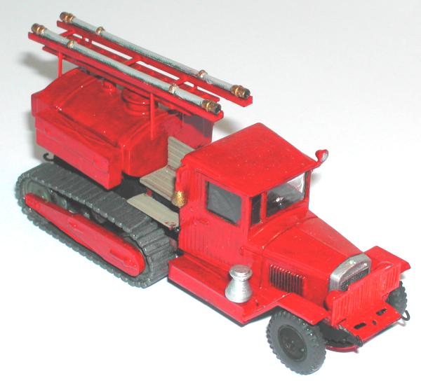 Auch dieses Fahrzeug entspricht nicht der Bauanleitung von PST. Alle Fotos von Löschfahrzeugen PMZ der UdSSR, die auf Halbkettenfahrzeugen aufgebaut waren, zeigen den ZIS 42M als Basisfahrzeug. So habe ich mich entschlossen, diese Variante zu bauen, auch unter dem Blickpunkt, dass die nötigen Teile zur Verfeinerung vorhanden waren.