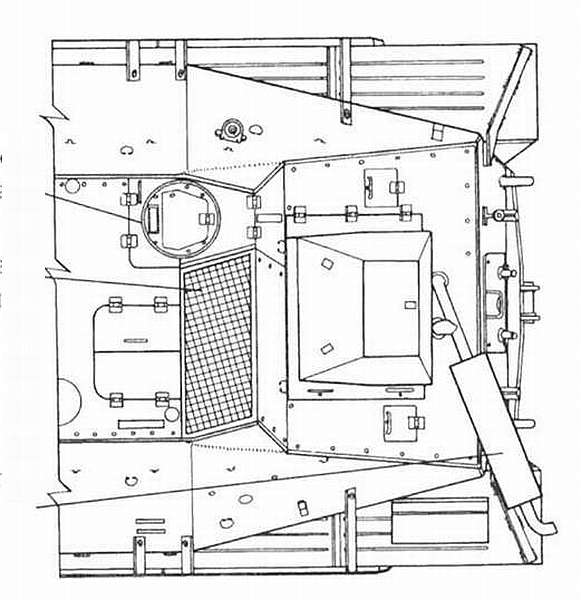 The hole in front armour was covered with a piece of an armour sheet, turret from LT-38 (Pz.38(t)) with the main gun removed and replaced with a flame