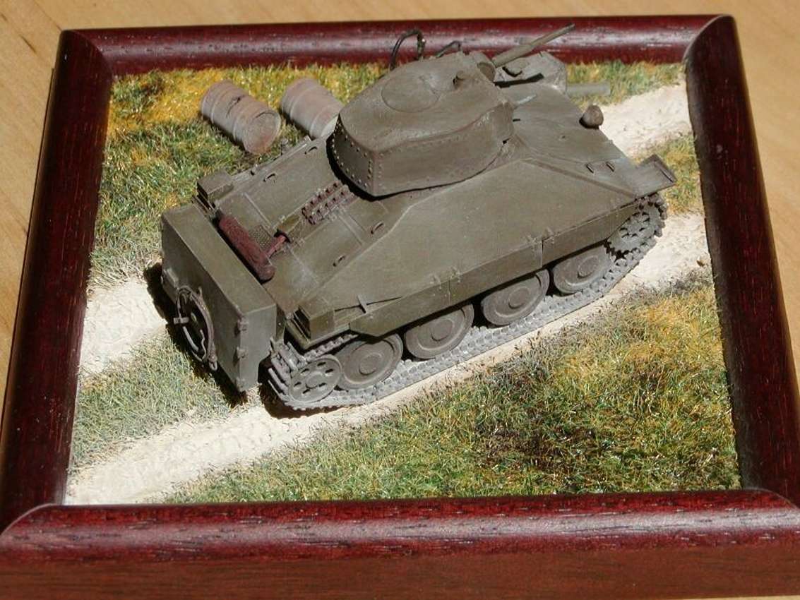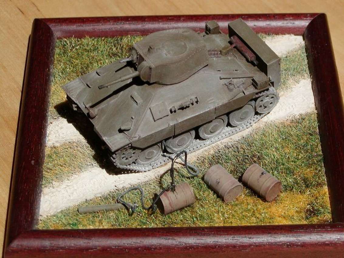 thrower and a machine gun from T-34. Huge box at the rear carried seven bottles with pressurized air to drive the inflammable fluid. Diorama portrays
