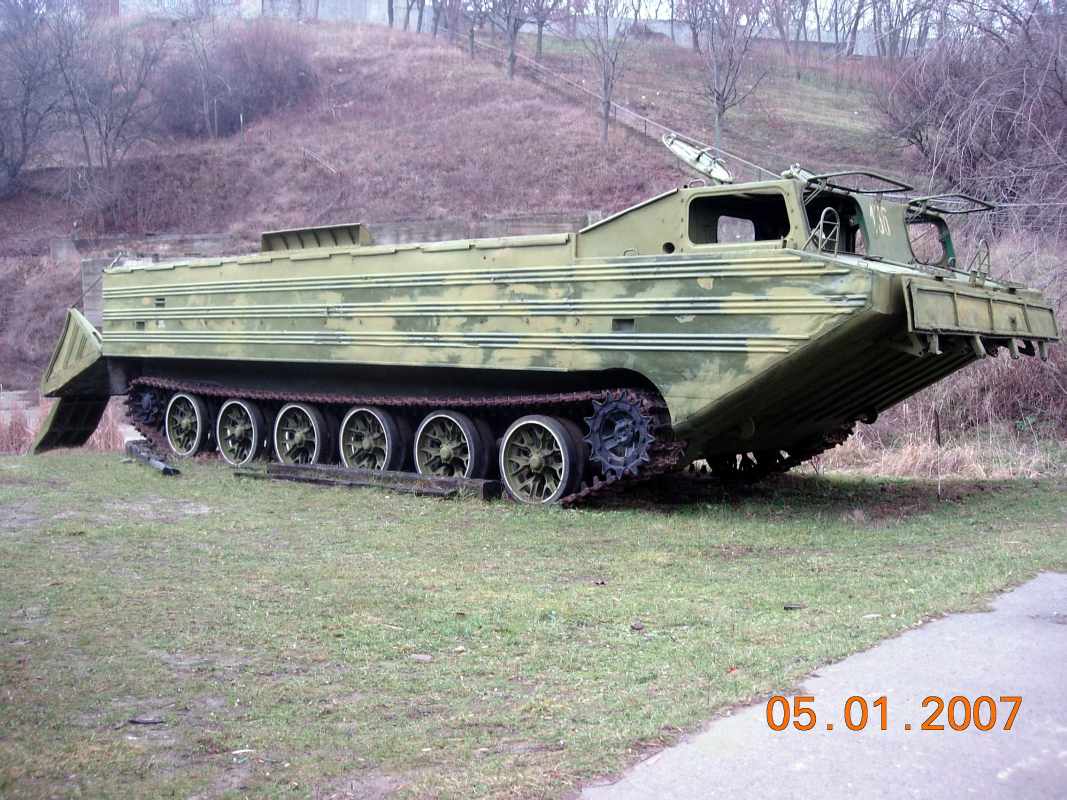 PTS Transporter floatable middle for transport of technics. Weight - 10t, Speed: on land - 42km/h, on water - 11,5km/h.