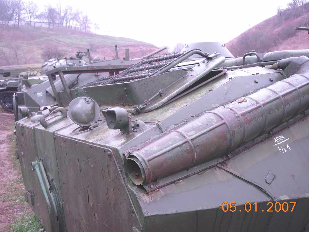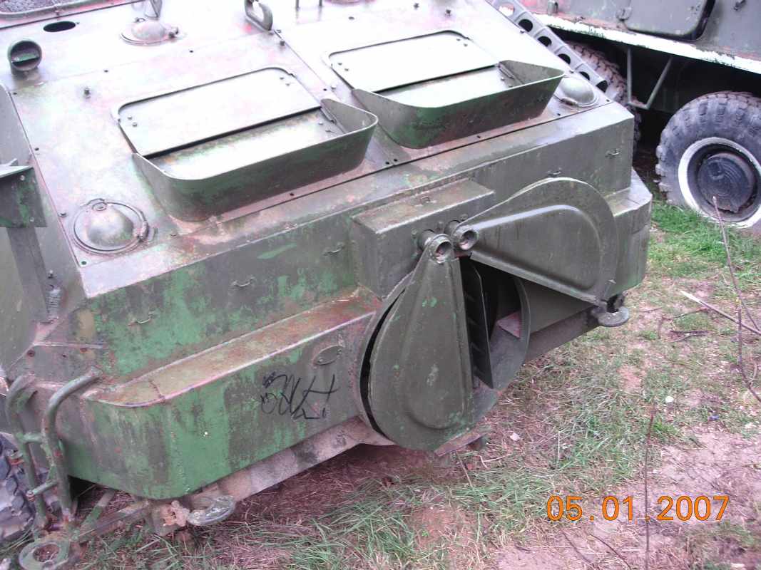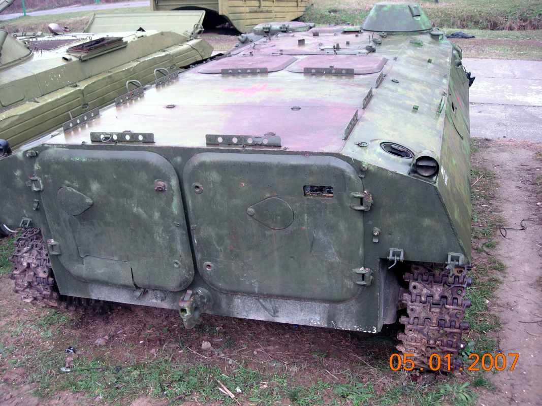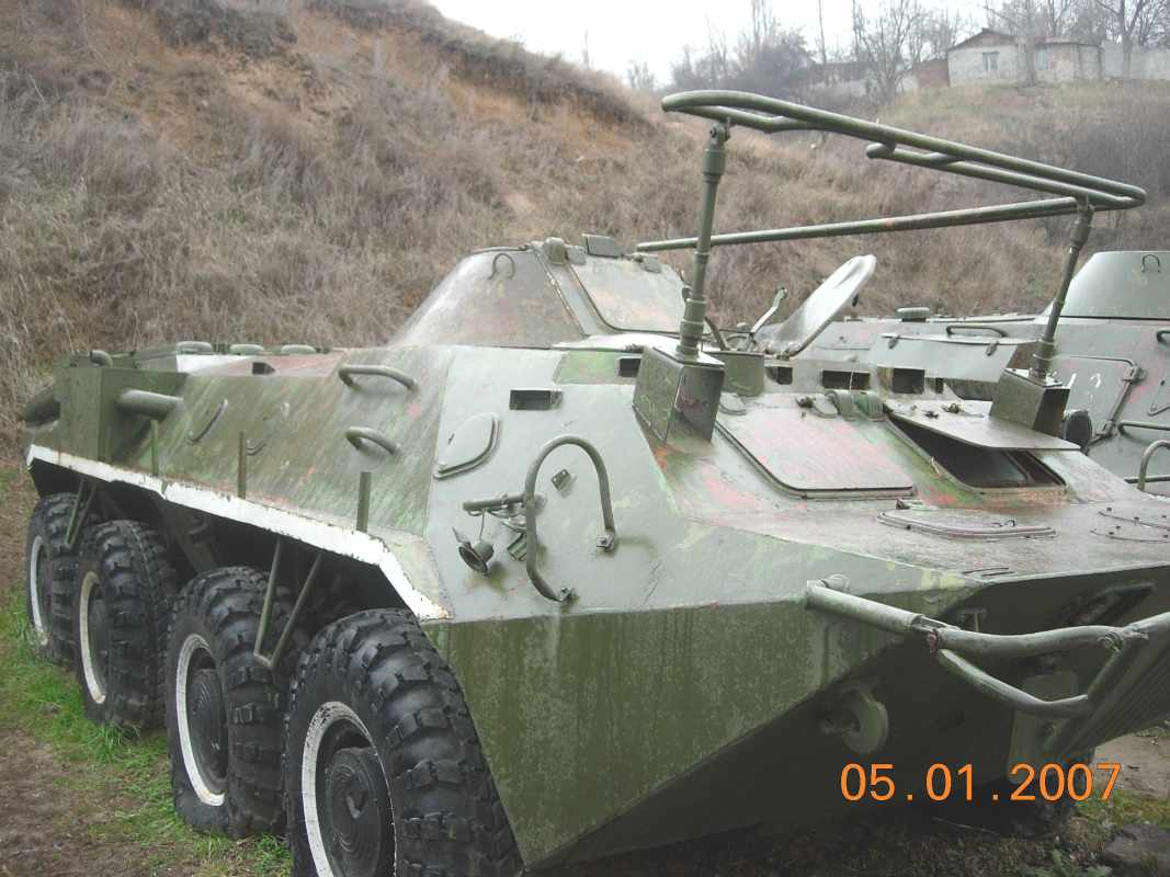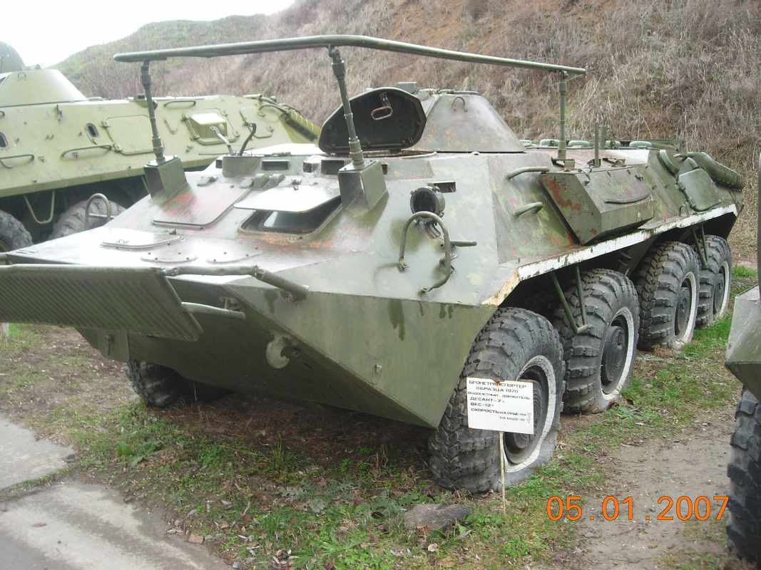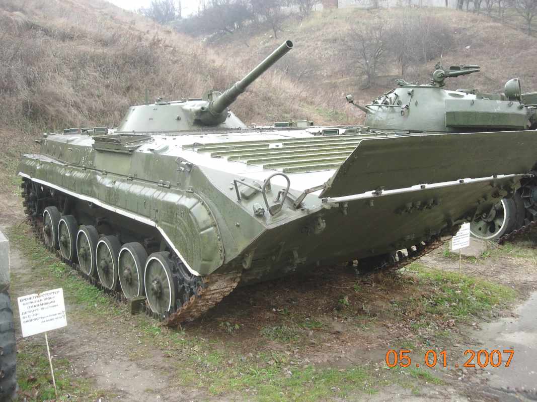 Armoured Personal Transporter (APC) model of 1970, Water-throw motor, Landing - 7 persons, Weight - 12t, Speed: on land - 60km/h, on water - 10km/h.