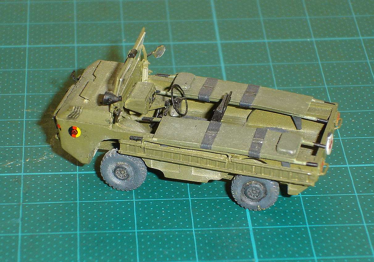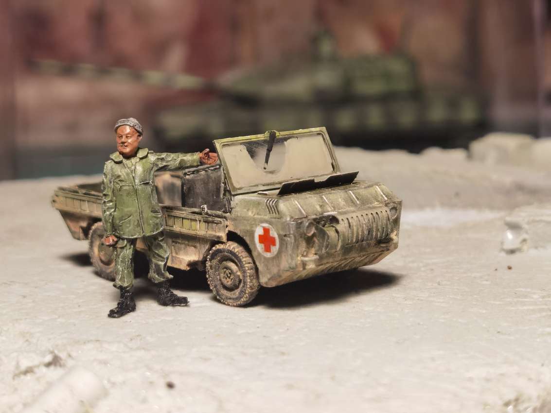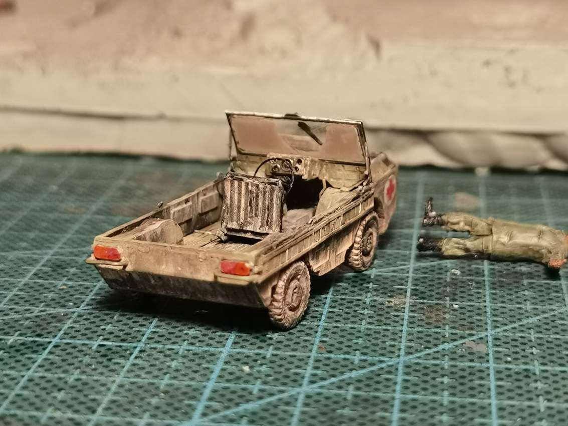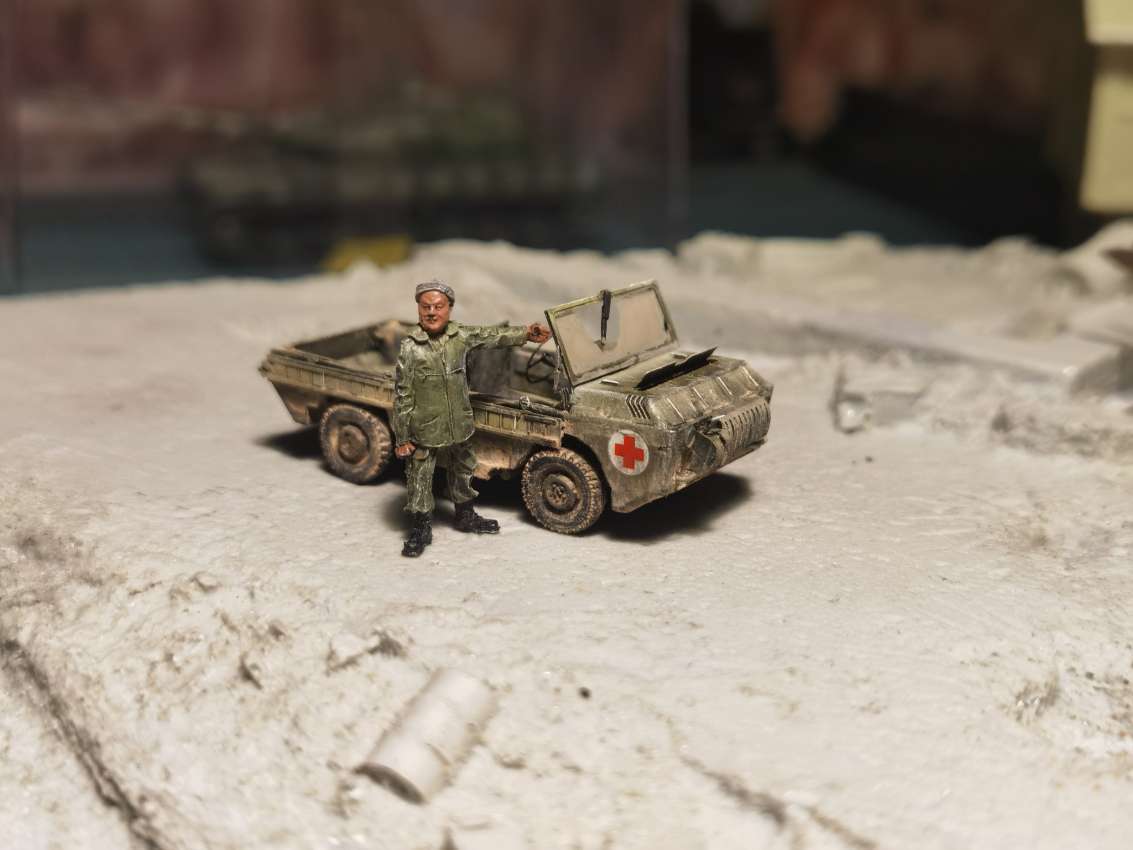 LuAZ-967 (Luhanskij AvtoZavod = Luhansk Auto Plant). The small, floatable all-terrain vehicle was used in the NVA in the medical battalions of the