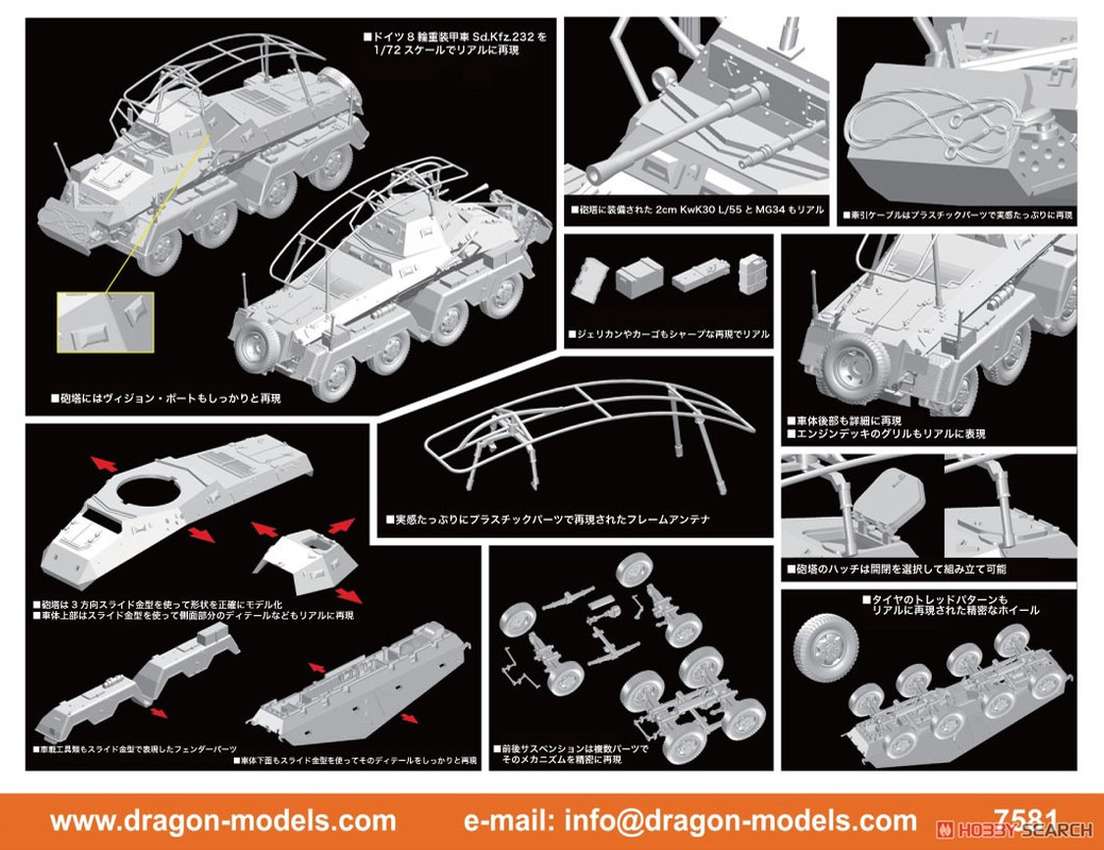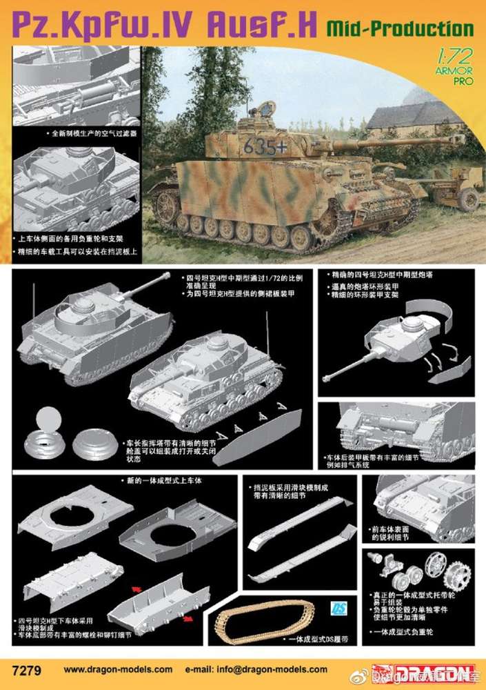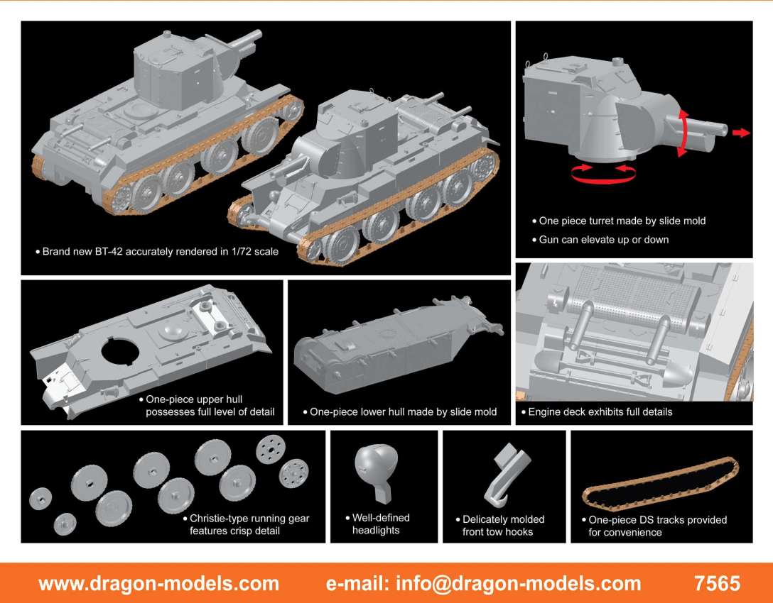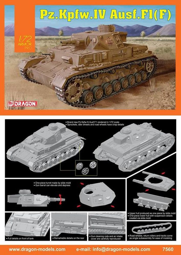 Dragon has previously released 1/72 scale plastic kits of the Panzer IV family, but this is the very first of the Ausf.D. Thus, it’s a 100% newly tooled kit. By judiciously combining smart engineering and slide-mold technology, the number of parts to assemble has been reduced to a minimum. For example, the road wheels and track run are made as one piece. Indeed, these parts only need to be plugged into the hull suspension units and glued and, hey presto, they’re finished! This is a completely new idea from Dragon to ease assembly in every possible way without sacrificing one iota of detail. Indeed, modelers will be able to enjoy their craft more than ever without wasting time on repetitive tasks. The Panzer Ausf.D was an early member of the family, but Dragon has applied the latest technology to it!