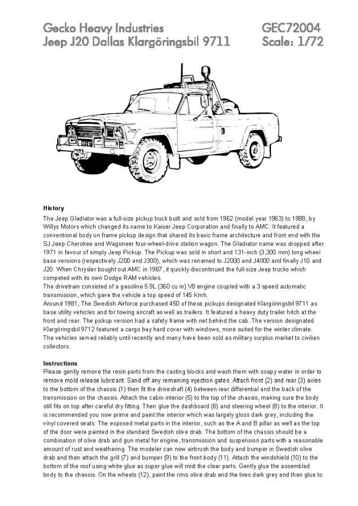 Kit 72010 - Jeep J20 Dallas Klärgoring 9712 as used by the Flygvapnet to ferry airmen around bases in winter