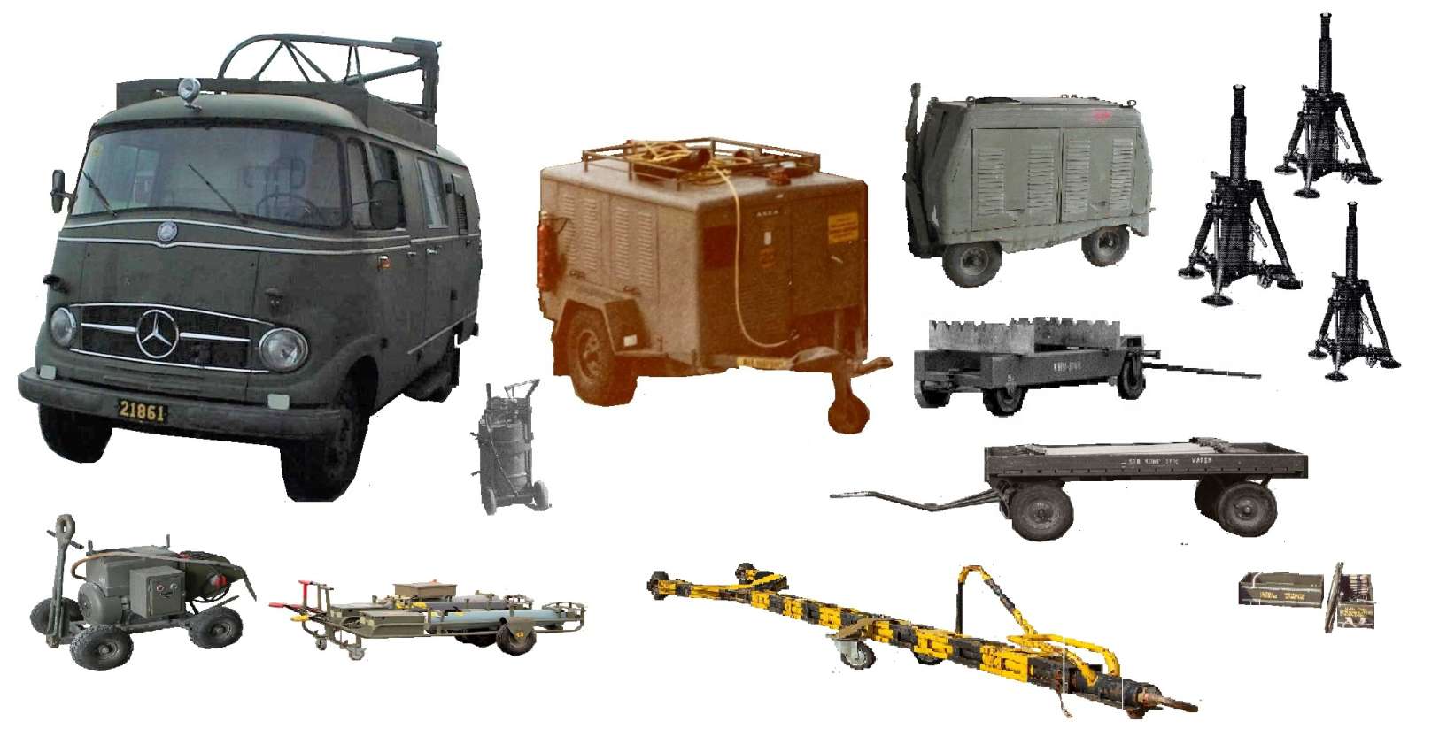 Trolley, 1 x Vernon MK3 Electrical Servicing Trolley, 2 x RAF Type F Bomb Trolleys, RAF Canberra Bomb Load with Avro bomb rack and cradle For Type F