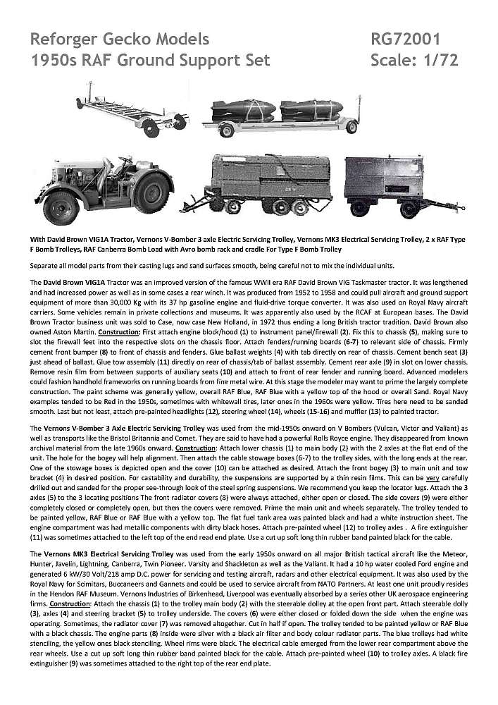 The 1950s RAF Ground Support Set is the first release. It includes the post war David Brown VIG1A Tractor, 1 x Vernon V-Bomber 3 axle Electric Servicing