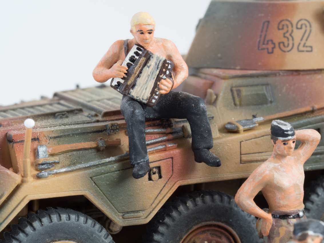 with Preiser figures and an Italeri kit with metal barrel main gun and machine gun. It was painted wit an Infinity airbrush using Hataka lacquer paint