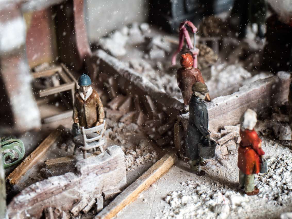 This diorama is situated in Warsaw during the uprising of the Polish resistance against the German Army in August, 1944.