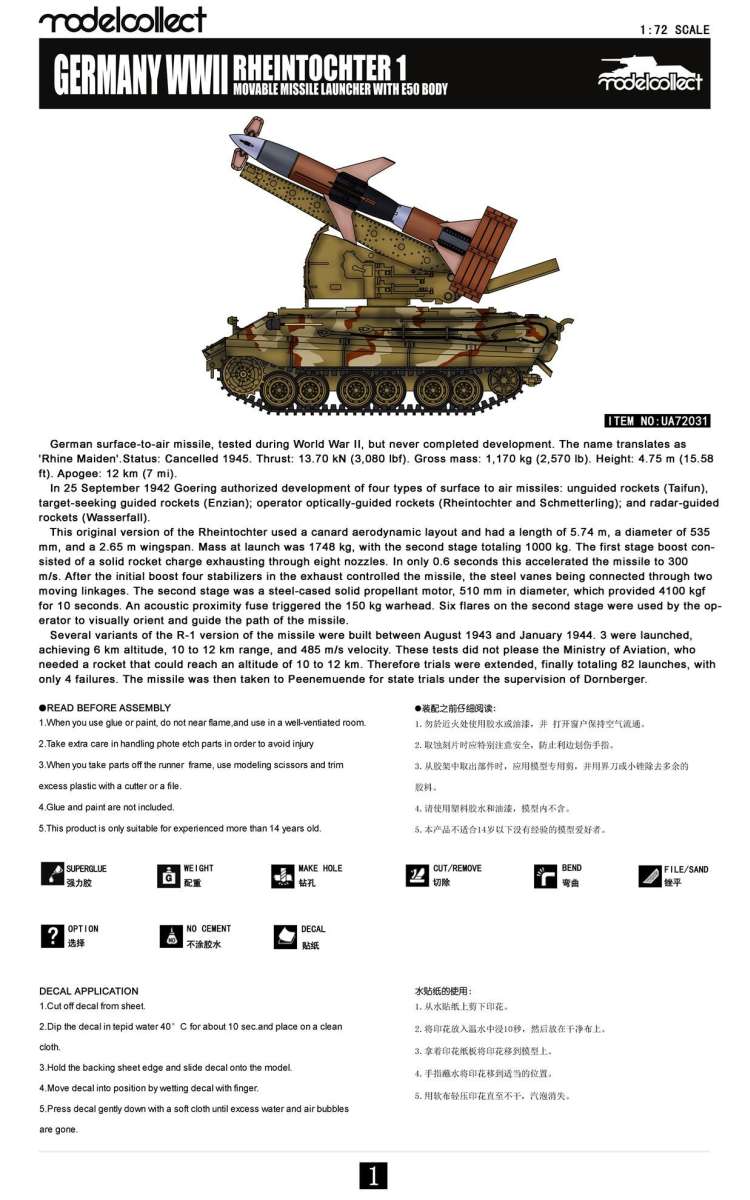 Kit UA72031 - Germany WWII Rheintochter with movable Missile launcher
