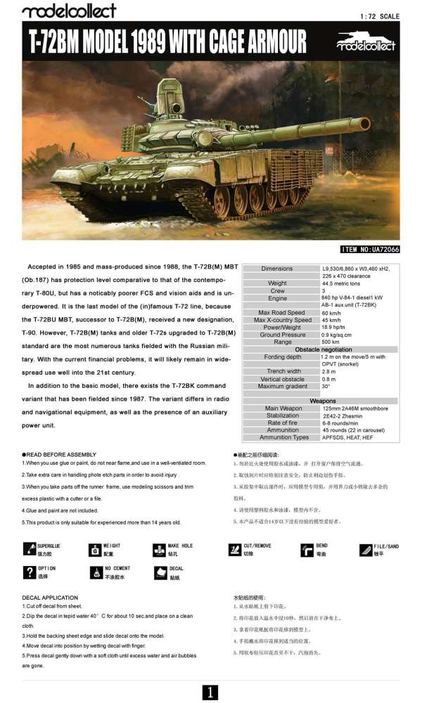 Kit UA72006 - T-72B main battle tank